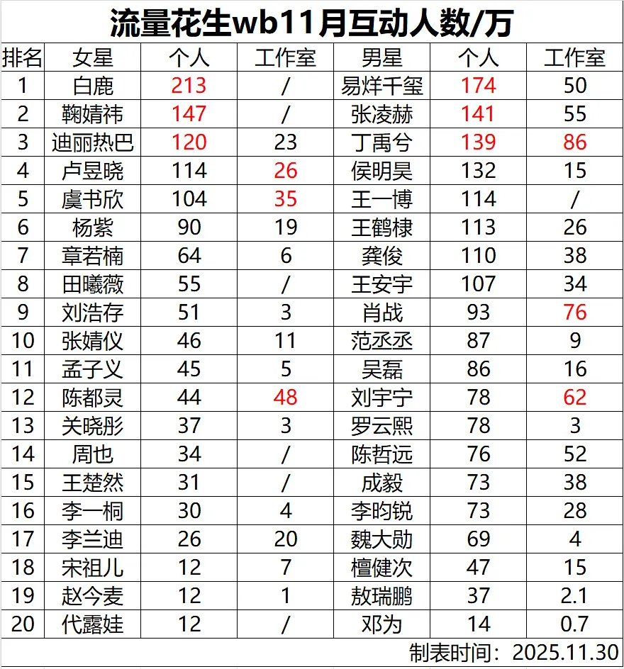 流量🌸🥜11月🧣互动人数
