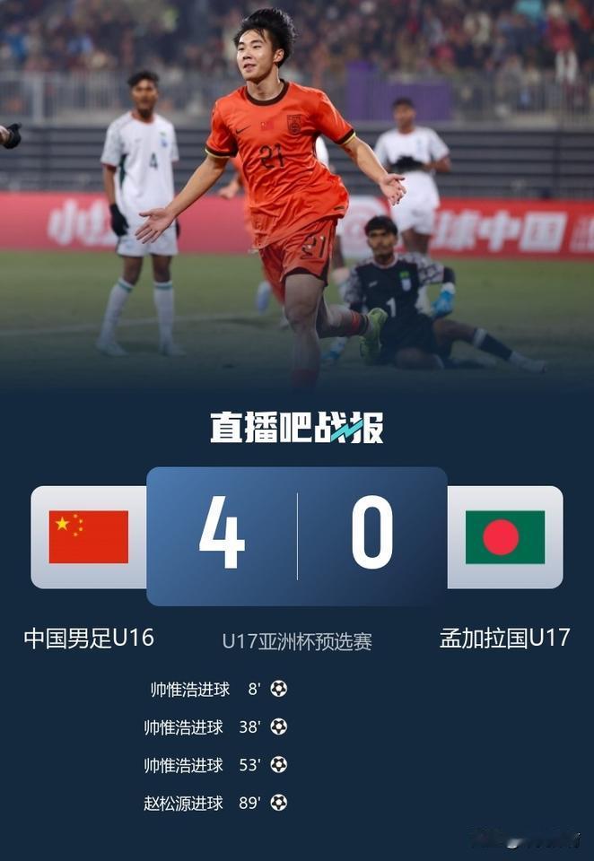 成都蓉城的帅帷浩在本届U17亚少赛预选赛小组赛中发挥出色!共帮助中国队打入了九个进球!尤其是在与孟加拉国u17的比赛中上演帽子戏法!是中国队战胜孟加拉的最大功臣之一! 赛后,记者潘伟力在直播中对帅帷浩的职业前景进行了分析!他认为明年的中超联赛对于帅帷浩来说非常关键,但是他又认为,成都蓉城如果启用帅帷浩进入一线队,有拔苗助长之势,而且帅帷浩在中超联赛的出场前景也不乐观!但是让他打中乙联赛又似乎有点太屈才! 其实,我认为成都蓉城应该给帅帷浩一线队机会!像今年上海海港的李新翔,上海申花的刘诚宇,大连英博的朱鹏宇今年联赛的表现就非常好!以帅帷浩在国少队的表现来看,成都蓉城完全可以让他进入一线队给他感受一下中国顶级联赛的氛围!打出来了对于成都蓉城和中国足球百利而无一害! 那么问题来了,你觉得帅帷浩明年能进入到成都蓉城的一线队吗?
