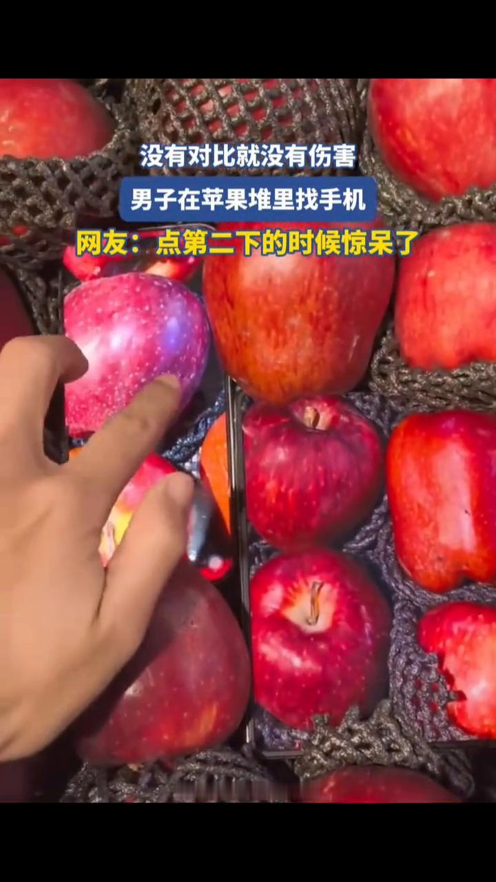 没有对比就没有伤害。男子在苹果堆里找手机。网友:点第二下的时候惊呆了。 如有侵权请联系删除。