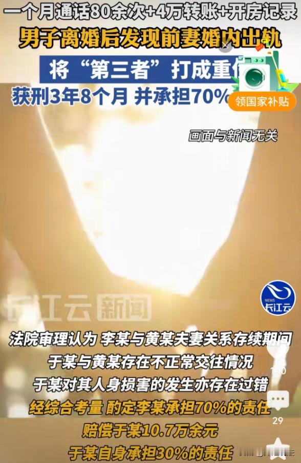 河南,李先生和黄女士离婚36天后,李先生去前妻店里看女儿,发现于某也在,他怀疑前妻和于某有不正当关系,看到前妻上于某车,便阻拦倒车,双方发生冲突,李先生将于某打成重伤,被判3年8个月有期徒刑。于某起诉李先生,要求赔偿医疗费等共计52万。李先生认为于某有错在先拒绝赔偿,于某承认开房却否认不正当关系。最终法院这样判了! 2024年4月16日,河南的李先生和黄女士离了婚,女儿归黄女士抚养。 5月22日晚,思念女儿的李先生去前妻店里看望。 没想到,他竟看到于某也在店里,前妻和于某有说有笑,关系看起来十分熟稔。 李先生怀疑两人有不正当关系,尤其是看到前妻上了于某的车,他更加坚信,便站在车后阻拦倒车。 于某下车后,看到李先生挡在车后,顿时火冒三丈,质问李先生想干什么。 李先生本就憋了一肚子火,看到于某这态度,更是气不打一处来,两人很快就起了冲突。 冲突中,李先生情绪失控,动手打了于某。 他下手没个轻重,一下子就把于某打成了重伤。 这时,有人报了警。 很快,民警赶到后控制住了局面,并把受伤的于某送去救治。 于某伤势严重,眼球受伤做了摘除,构成七级伤残。 这下,事情闹大了。 李先生因为故意伤害罪,被依法刑事拘留,后来经过法院审理,被判了3年8个月有期徒刑。 李先生进了监狱,于某也没闲着,他觉得自己无辜被打,受了这么大的罪,得让李先生赔偿。 于是,于某起诉李先生,要求赔偿医疗费、伤残赔偿金等共计52万。 李先生得知于某起诉自己后,他认为自己很冤,要不是怀疑于某和前妻有不正当关系,自己也不会冲动动手。 他说于某有错在先,自己不应该赔偿。 于某面对李先生的指责,承认自己和李先生前妻开过房,但坚决否认有不正当关系。 他说自己和黄女士只是普通朋友,开房也是正常交流谈心,李先生不应该因此打人。 那么,李先生到底该不该对于某的损失进行赔偿呢? 从李先生的立场看,是于某的行为,让他产生了误解,才导致冲突发生,于某有过错。 从法律依据来说,《民法典》规定,行为人因过错侵害他人民事权益造成损害的,应当承担侵权责任。 李先生动手打人,造成于某重伤,明显存在过错,按照法律规定,他应该承担赔偿责任。 那么,于某有没有过错呢? 虽然他否认有不正当关系,但他和李先生前妻开房这一行为,确实超出了普通朋友的正常交往范畴。 这种行为,在一定程度上刺激了李先生,对于损害的发生有一定的影响。 根据《民法典》的规定,被侵权人对同一损害的发生或者扩大有过错的,可以减轻侵权人的责任。 也就是说,虽然李先生要承担赔偿责任,但因为于某也有过错,所以可以减轻李先生的责任。 法院在审理这起案件时,对双方的过错进行了仔细分析。 法院认为: 李先生打伤于某,构成侵权,这是毋庸置疑的。 但于某和李先生前妻开房,存在不正常的交往,对于损害的发生也有过错。 最终,法院经过核算,认定于某的各项损失共计15万。考虑到双方的过错程度,法院判定李先生承担70%的责任,也就是要赔偿于某10.7万。 为什么李先生要承担主要责任呢? 这是因为李先生动手打人,是导致于某受伤的直接原因,他的过错更大。 而于某虽然有过错,但只是在一定程度上刺激了李先生,不是导致受伤的直接因素。 如果于某没有和李先生前妻开房,李先生是不是就不用赔偿了? 当然也不是,就算于某没有开房,李先生动手打人也是违法的,只要造成他人损害,就要承担赔偿责任。 只不过在这种情况下,于某没有过错,李先生可能要承担全部赔偿责任。 在遇到类似情况时,一定要冷处理,别冲动。 就像李先生,本来是去看女儿,却因为怀疑前妻和他人关系,冲动动手,最后不仅坐了牢,还要赔偿一大笔钱,真是得不偿失。 信源:长江云新闻