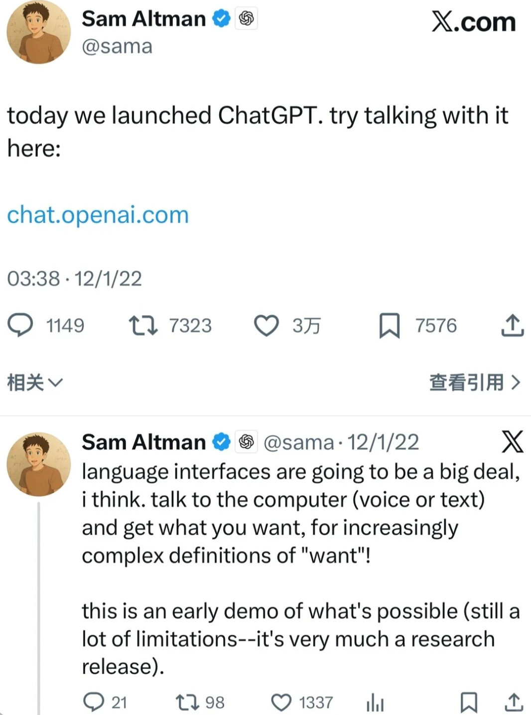 三年前的今天,ai界炸了一颗“GPT”,同时也开启了ai革命事业的开端。你还记得你向ChatGPT提出的第一个问题吗?