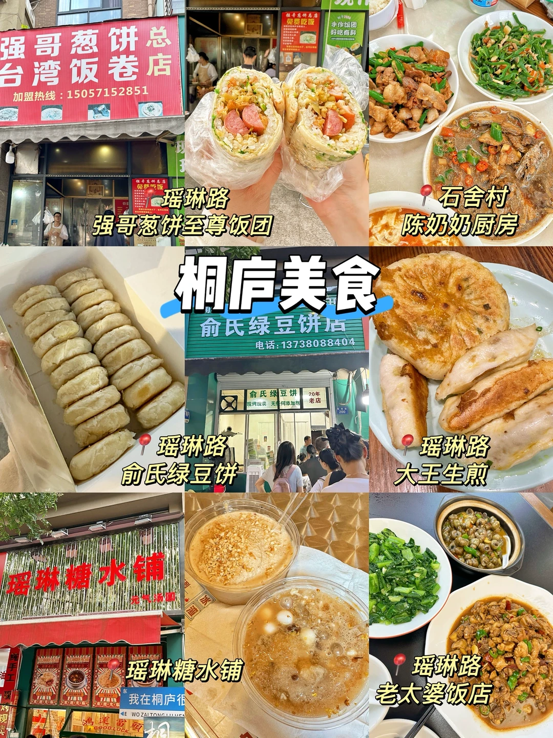 👉🏻推荐强哥葱饼、周记蹄花、姚记面馆、俞氏绿豆饼(20r/盒)、瑶琳糖水铺(花生冰沙很好吃👍)、大王生煎(菜饼好吃😋)、毕浦小笼、老太婆饭店、同路人等。
