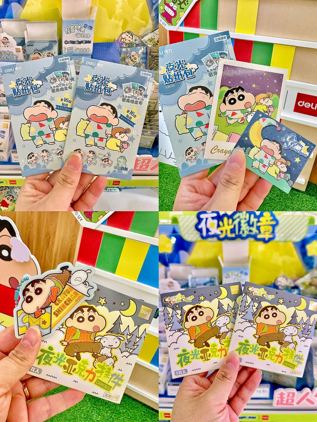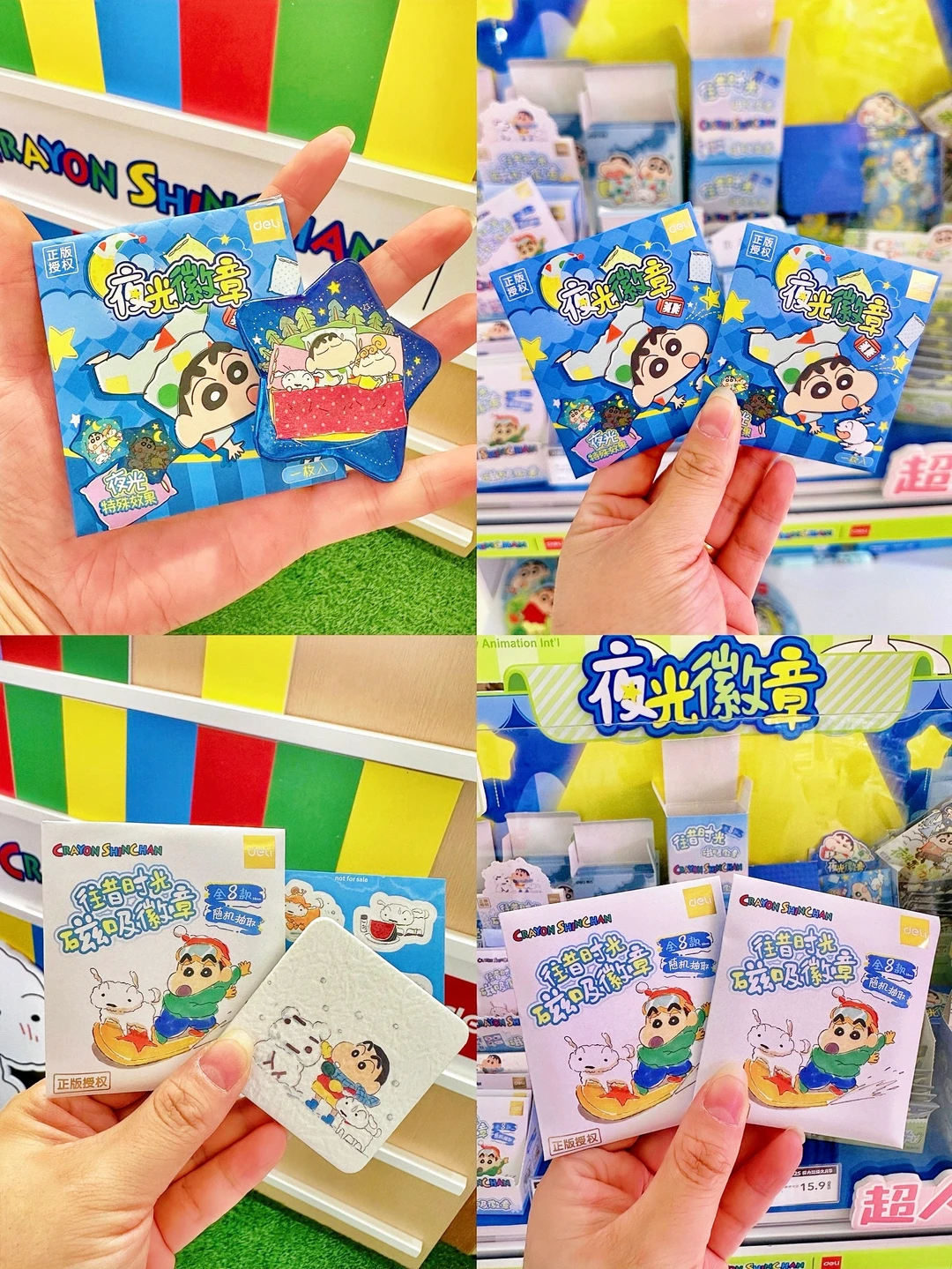 蜡笔小新夜光徽章、夜光亚克力挂件、夜光贴纸包、