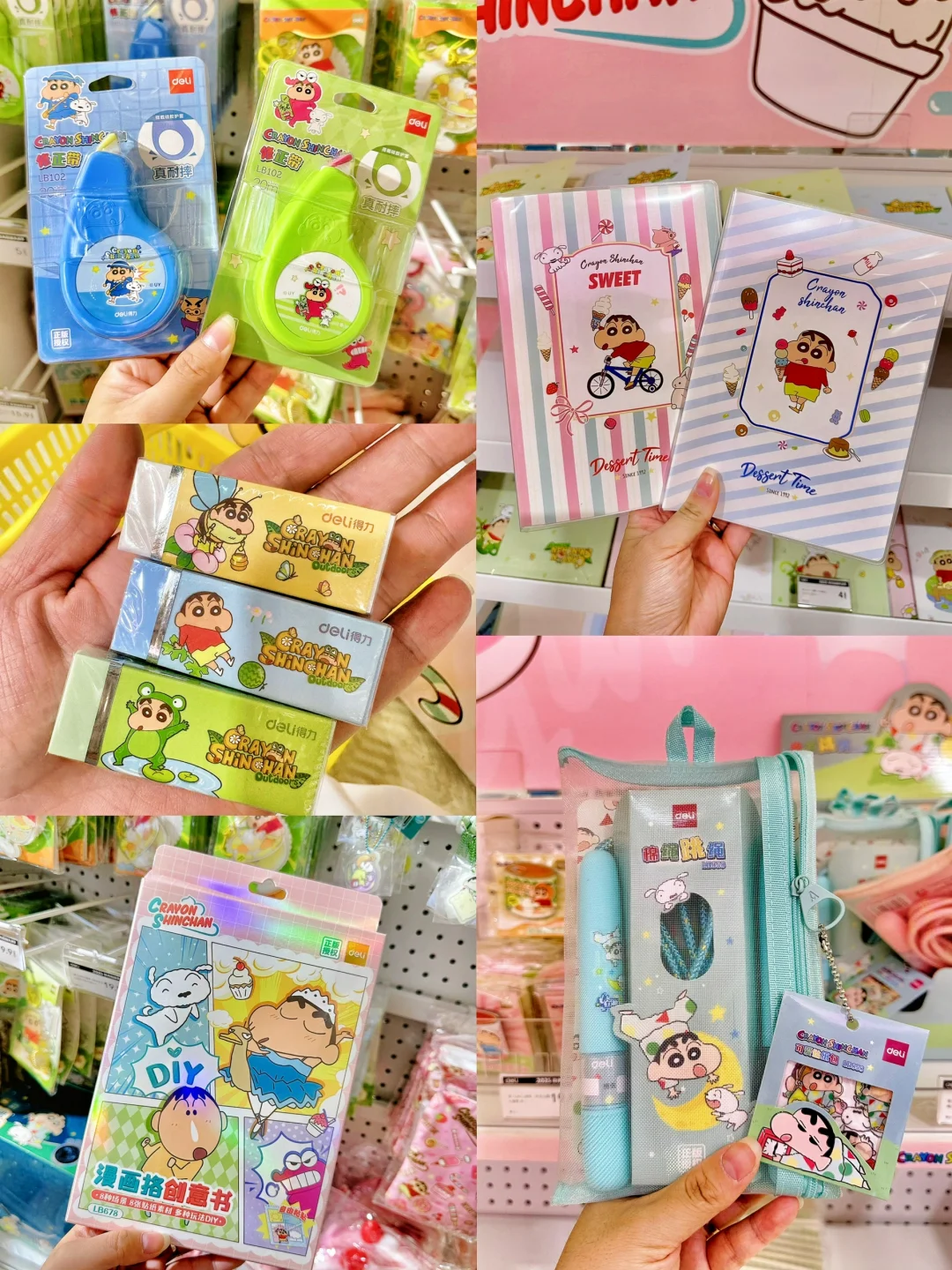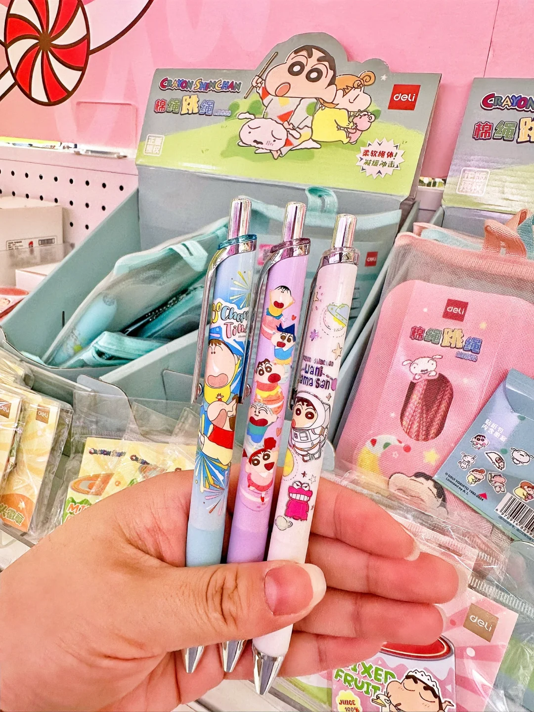 还有蜡笔小新斜挎包、收纳包、文件袋、盲盒中性笔、摇摇磁扣本…超多周边!!小新控简直挑到手软!🥰