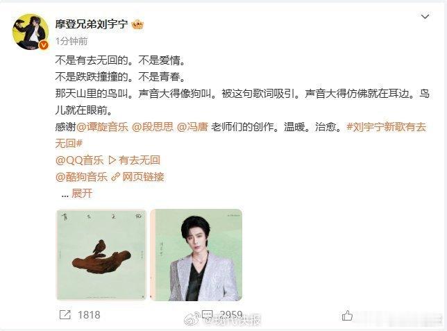 刘宇宁被有去无回歌词吸引刘宇宁新歌有去无回温暖治愈新歌治愈力满满!刘宇宁被歌词打动,用真诚嗓音传递温暖,戳中内心柔软,太喜欢~