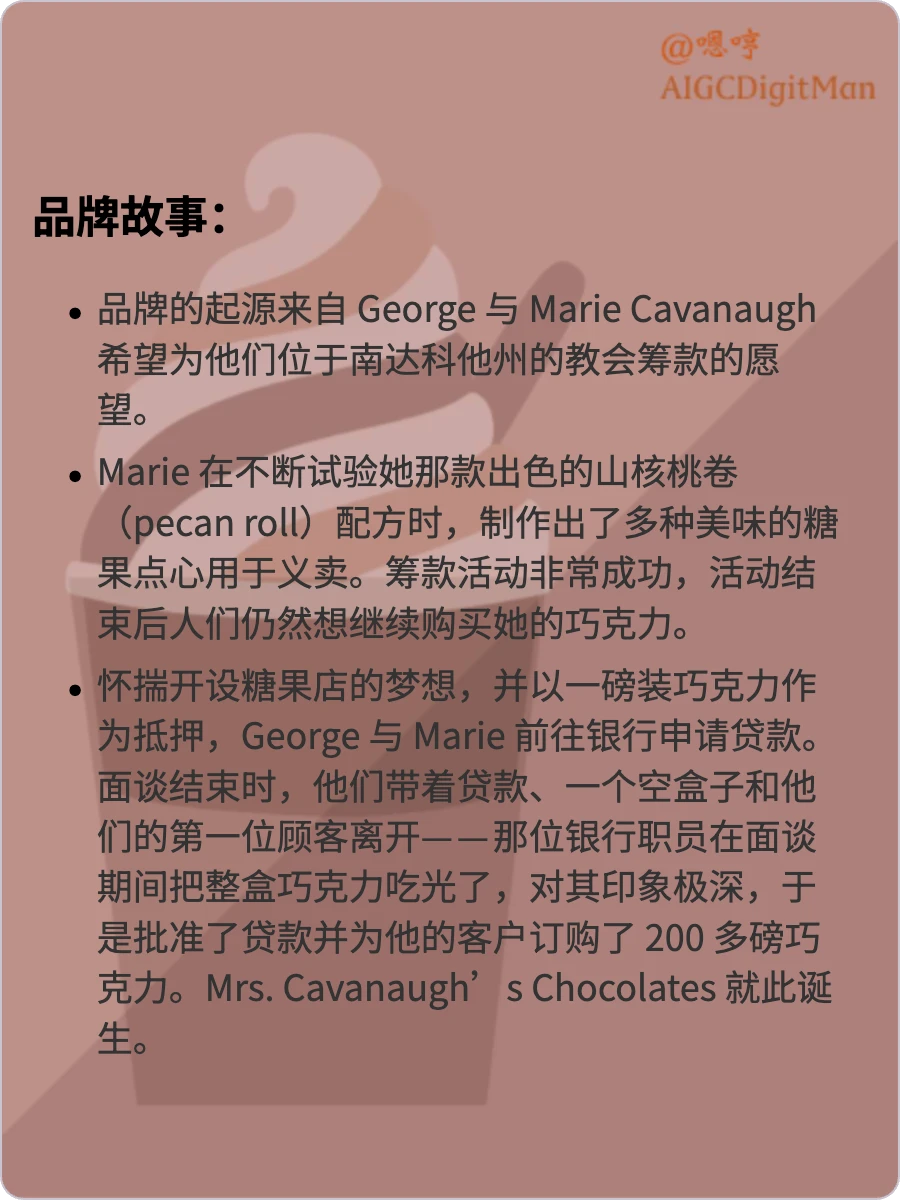 Mrs. Cavanaugh’s Chocolates 就此诞生。