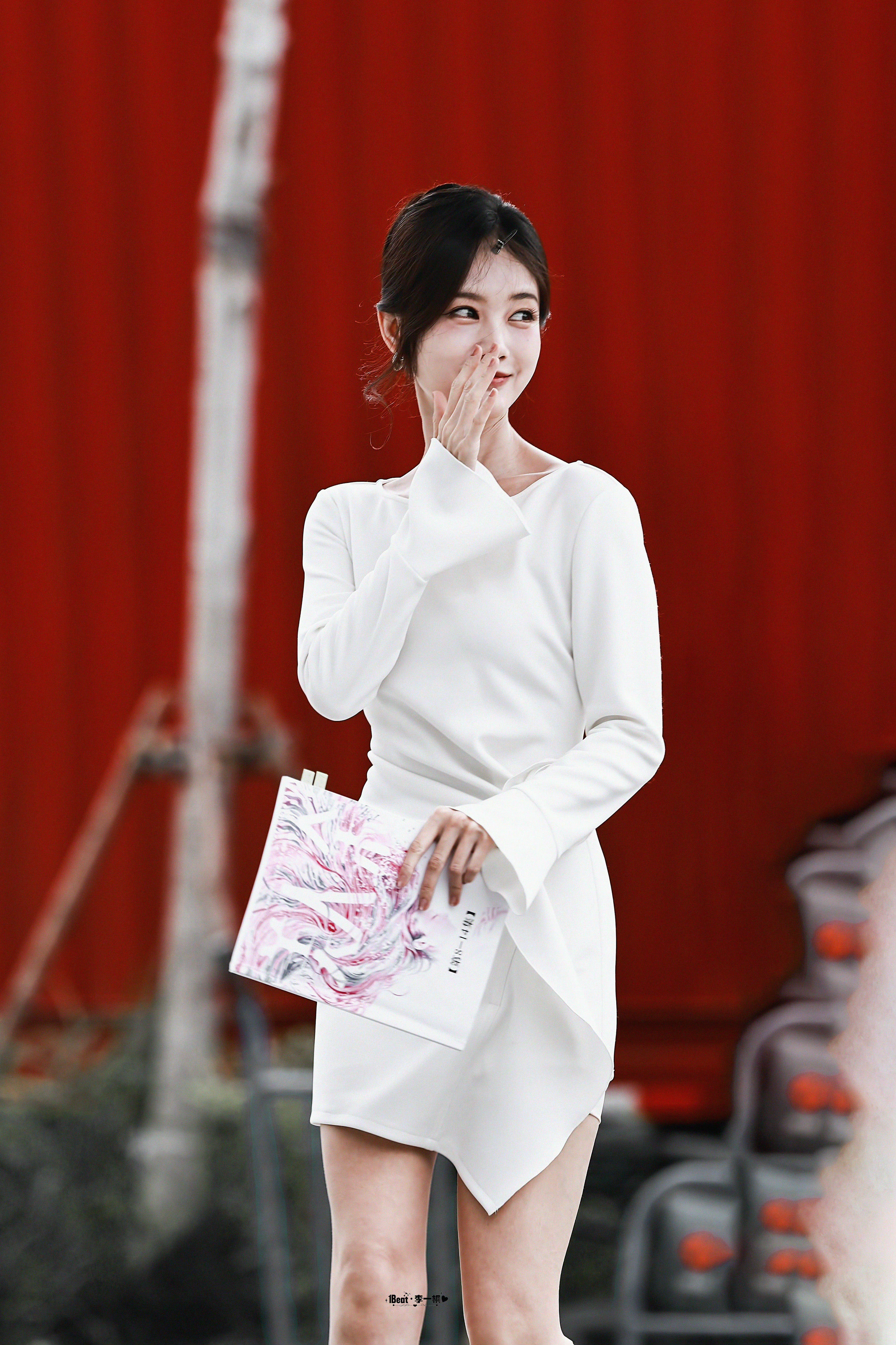 吴艳妮在成都穿着短裤大腿看起来很粗壮,表情自信又张扬