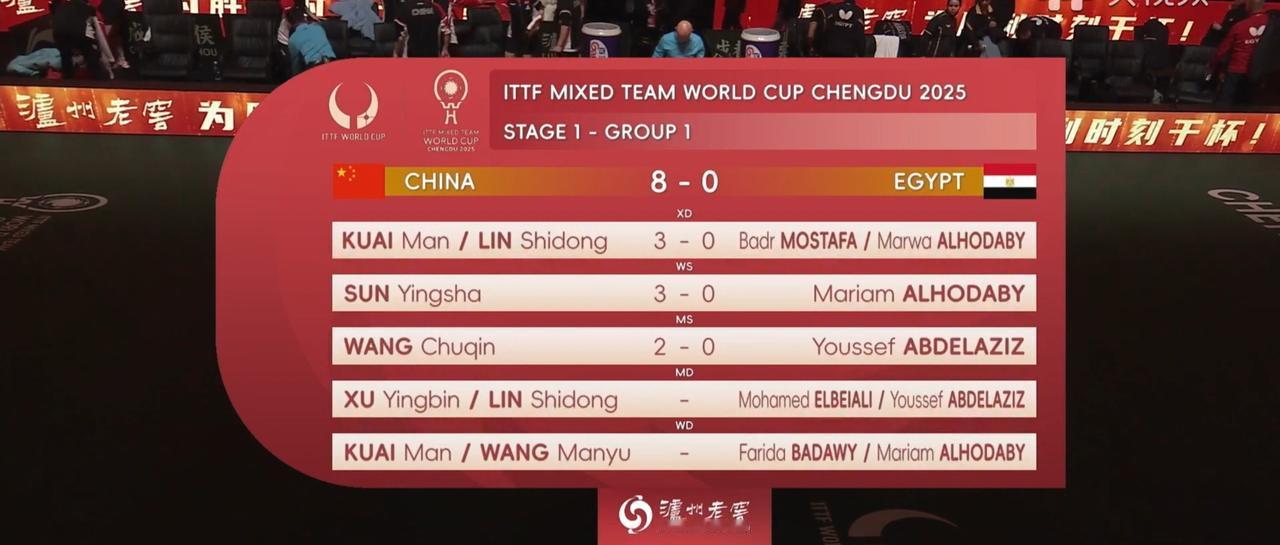 成都混团,中国队对阵埃及,莎头以单打身份出战, 不出意料,打的都挺轻松, 8:0顺利拿下, 特别是大头, 对手差距太大, 只要对手不是樊振东, 大头打的都得心应手, 特别是前三板, 几乎对方都无招架之力, 继续加油吧。