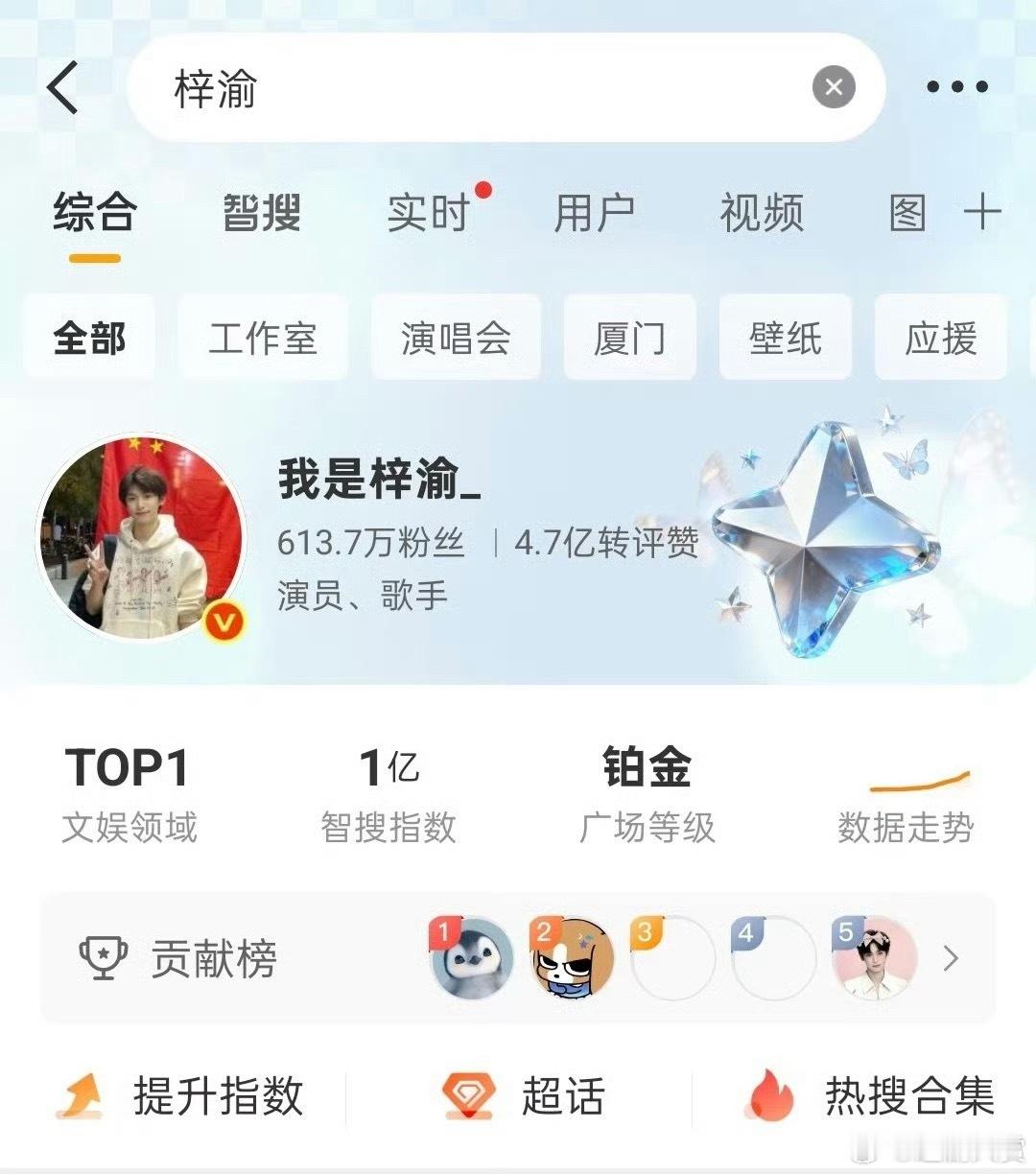 梓渝智搜指数破亿了!成为内娱第一且唯一达成的艺人,断层领先近3kw,太厉害了!