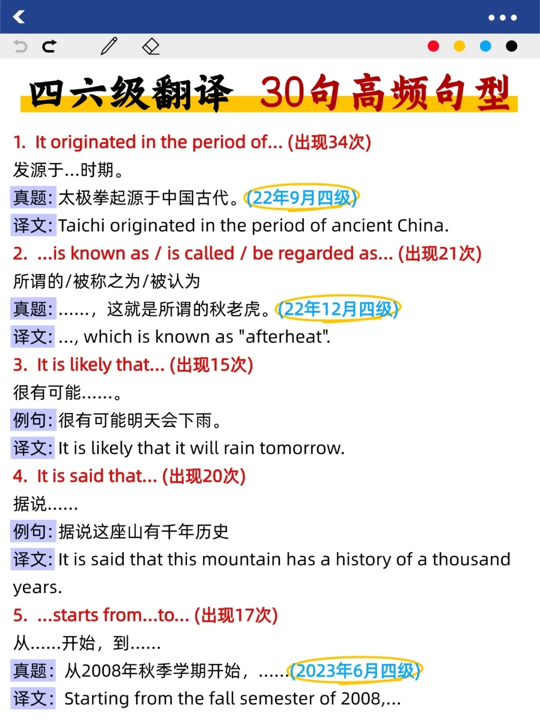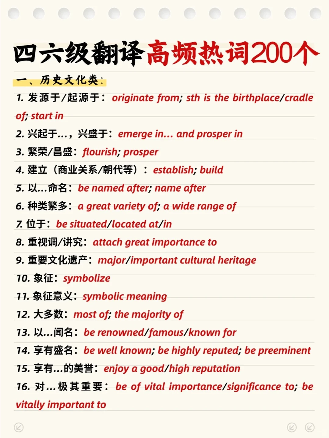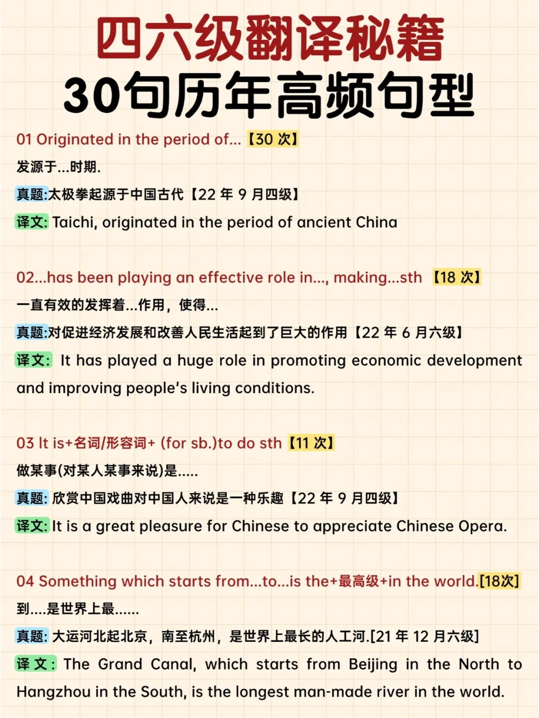 直接背透《中国文化概况》!🔥 过去六年,这本书已经出了34次原题了!含金量超高,不看真的很亏!🤯 再刷翻译真题,熟悉题型和考察内容。提取主干,用简单的主谓宾句子进行翻译。(手写批注版备好,翻译直接拿捏!)