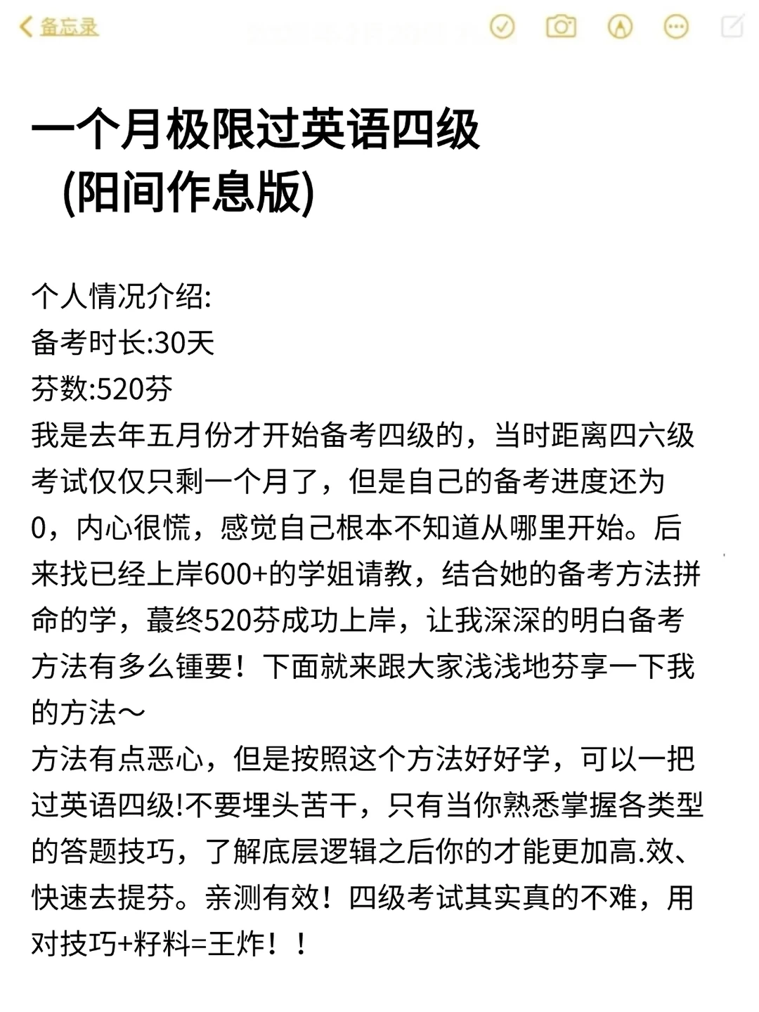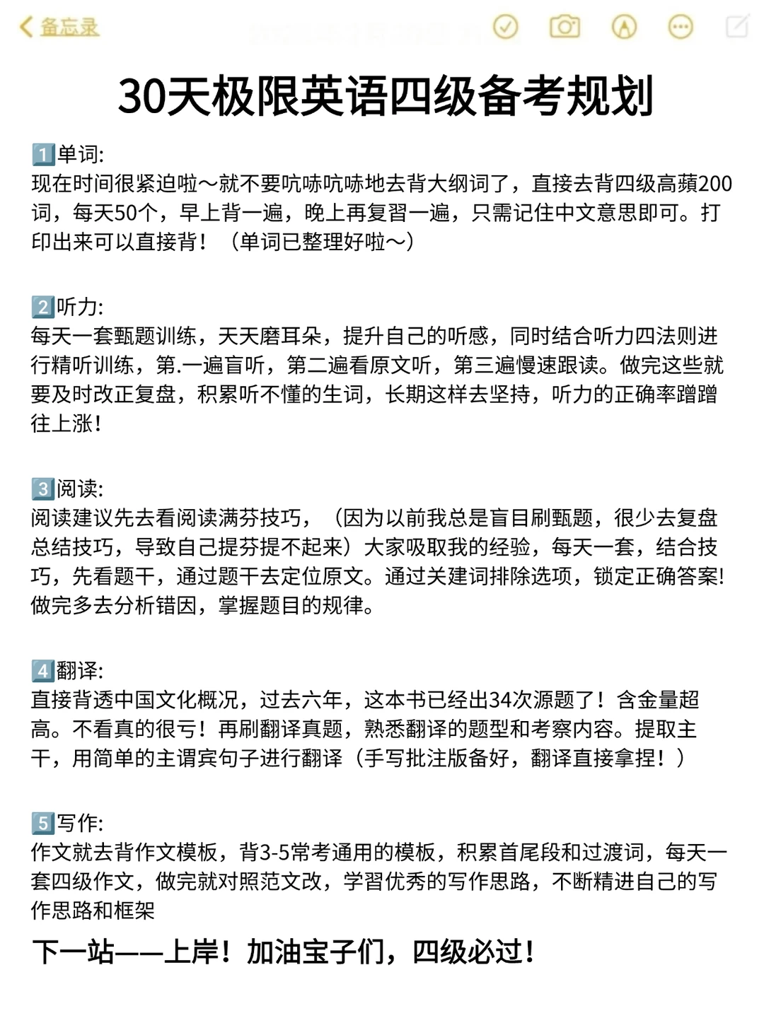 姐妹们!👩🎓 我去年5月份才开始备考四级,距离考试只剩一个月,进度还是0!