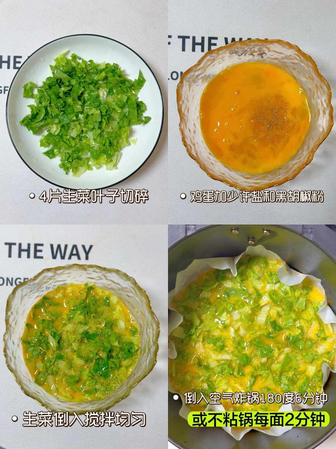 超适合减脂期间做的早餐,一定要试试,无面粉无油,而且超级简单,重点是好吃😋还不胖。 🍱食材:生菜4片,鸡蛋2个 [樱花R]方法:在图4有详细说明,可以用空气炸锅,180度8分钟或者是不粘锅小火每面各煎2分钟。