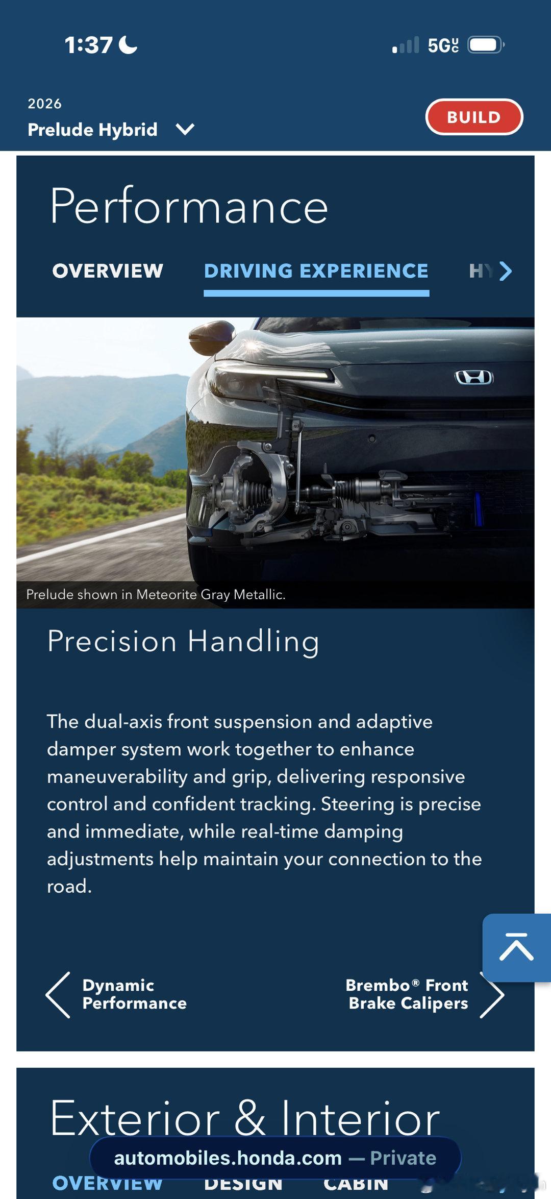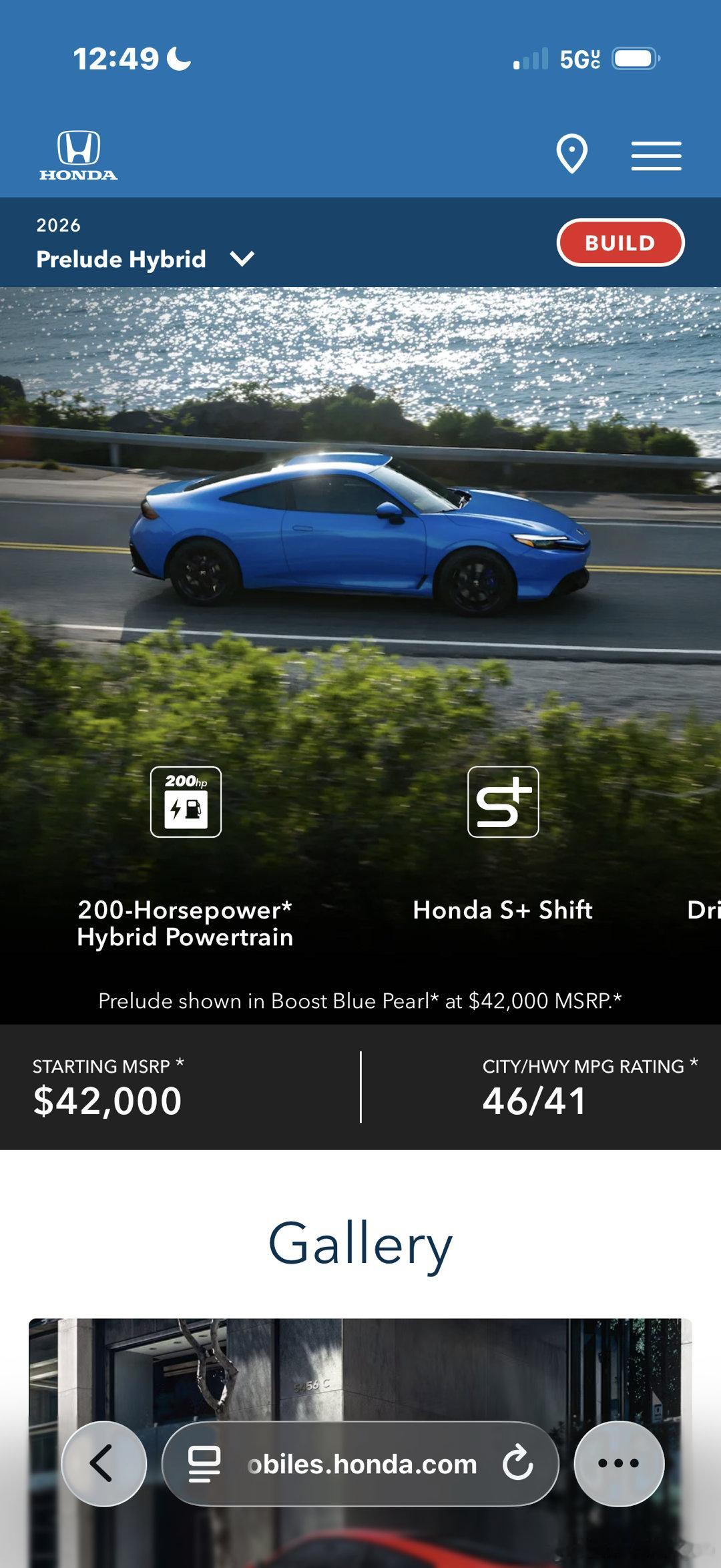 2026款本田新Prelude,定位小型GT轿跑(老头乐),和思域混动共享动力总成,200马力IMMD混动。售价4.32万美元起,合人民币30万,有些经销商加完价6万多。加上了ECVT模拟换档,下放自Type R的双支柱式超级麦弗逊前悬,还有Brembo四活塞前卡钳。好歹配个Type R的动力总成啊,我看实测0-96kph加速8秒多,2026年了还给200匹的弱鸡动力简直是对车迷们的侮辱。