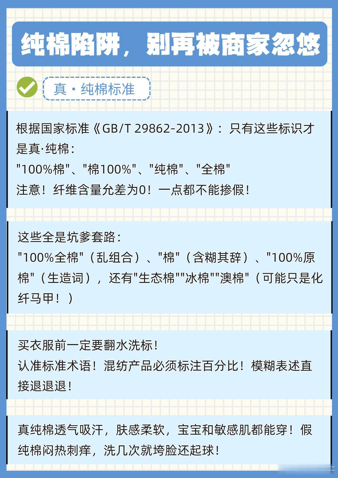 才知道原来100%纯棉不是棉“100% 纯棉”是假的,别再上当了!真的气炸了!我说我那标着“100%纯棉”的短袖怎么还起球呢?搞了半天根本不是真纯棉!仔细一查才发现,原来“100%全棉”这种标识也根本不是真纯棉!纯纯文字游戏啊!😤才知道原来100%纯棉不是棉