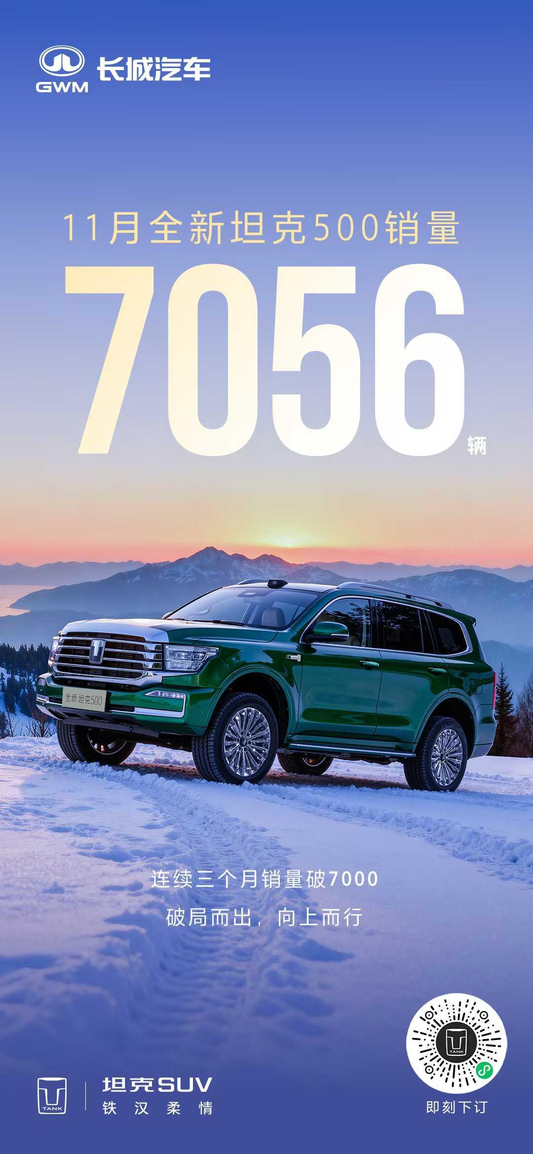 全新坦克500 11月销售7056辆 连续三个月销量破7000