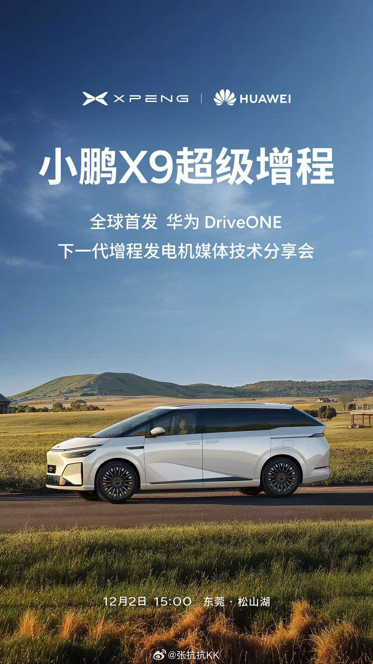 小鹏X华为 —— 增程X9车上的华为DriveONE下一代增程发电机技术分享会。其实,23年小鹏就用上华为的电驱动技术了,那就是G6四驱版的前电机,供应商是华为DriveONE。只不过G6四驱卖得很少,所以用得人也特别少。当时的逻辑是,G6前电机用得少,所以自研不如外采。而X9不一样,每一个增程X9上都必然有一个DriveONE发电机,那么二者的合作深度将大大加强。在发布会之前,也有一些悬疑: 小鹏本身的自研电机已经很强了,为什么还要用华为的呢? 所以,发布会上,大家重点关注一下二者的互补之处吧!!