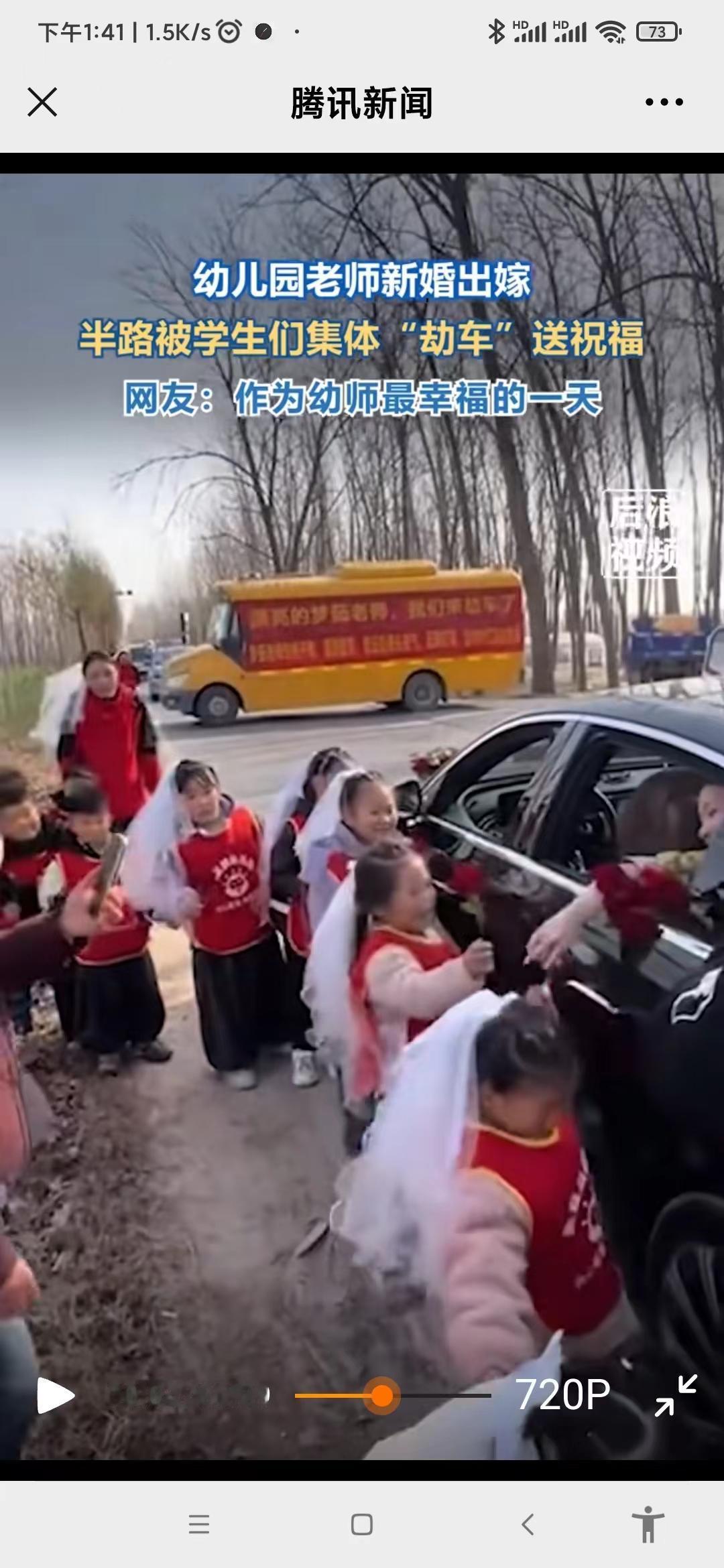 【幼儿园老师出嫁路上,突遭全班萌娃“劫婚车”!老师当场泪崩】 近日,山东一幼儿园老师出嫁,孩子们列队“拦路”送花,围住婚车送祝福,把新娘的心都甜化了!网友:这个老师要记一辈子了! (来源:腾讯新闻) 近日,山东一位幼儿园老师的接亲车队,在途中被一群“神秘小分队”拦停了——居然是她班上的孩子们!每个孩子手举鲜花涌向婚车,奶声奶气喊着“梦茹老师,我们来‘劫车’啦!” 原来,孩子们知道老师要结婚,悄悄和家长策划了这场惊喜“突袭”。视频里,穿婚纱的新娘摇下车窗瞬间眼眶就红了,一边收花一边抹泪。有孩子踮脚递上自己画的贺卡,还有小男孩认真嘱咐:“老师要幸福哦!”车队旁家长笑中带泪记录着这一幕。 网友直呼:“这简直是幼师职业的高光时刻!”“平时喂饭、梳头、擦眼泪的辛苦,在这一刻都值了。”更有人感慨:最好的教育,就是用爱回报爱——老师把小朋友捧在手心三年,孩子们就用整片花海送她开启新人生。 或许多年后孩子们已记不清拼音算术,但一定会记得那天早晨,他们如何用一束花,“劫”住了老师最幸福的时光。山东婚车事件