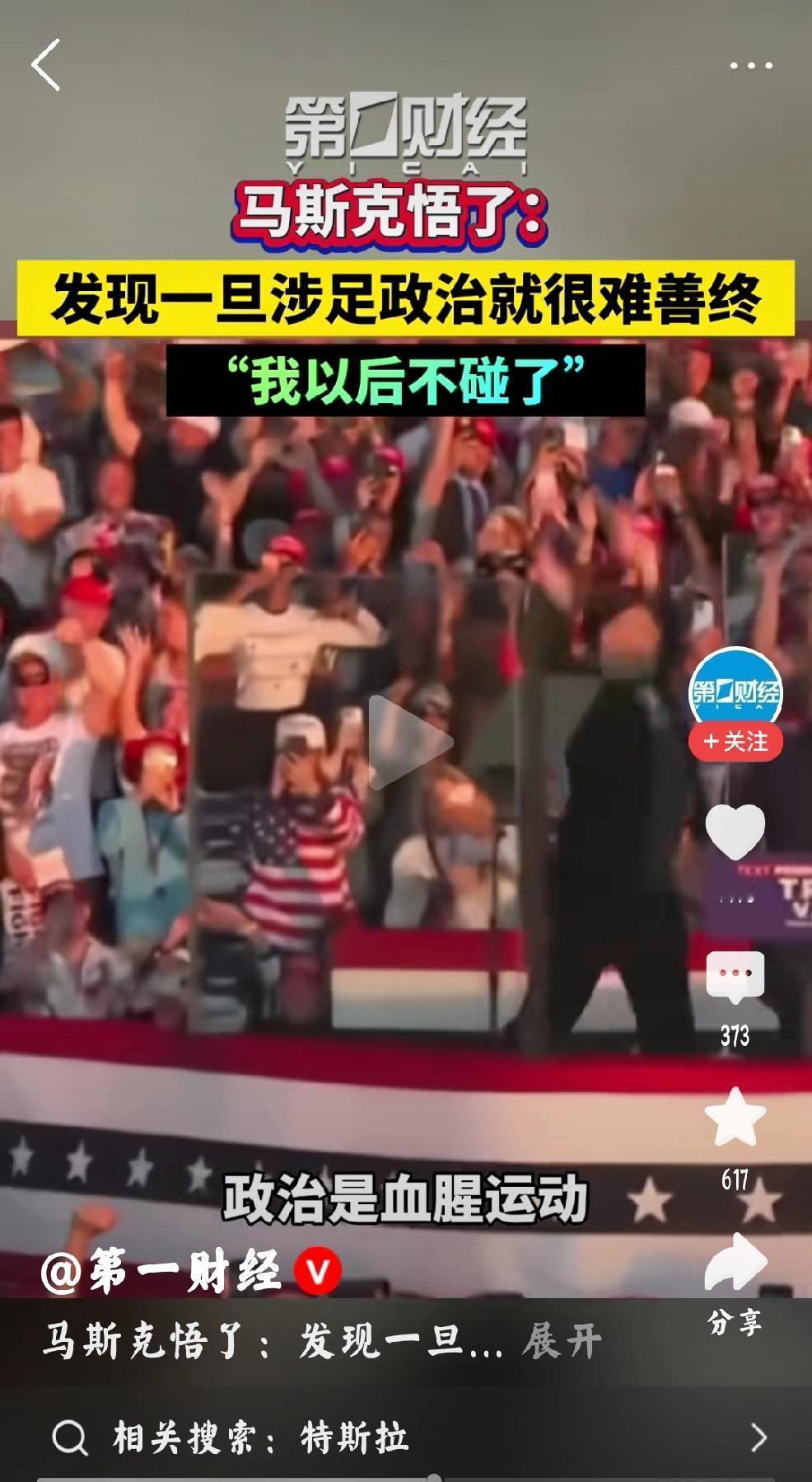 马斯克:政治是血腥运动 个人观点:个人认为这反映了美国政治生态已经到了