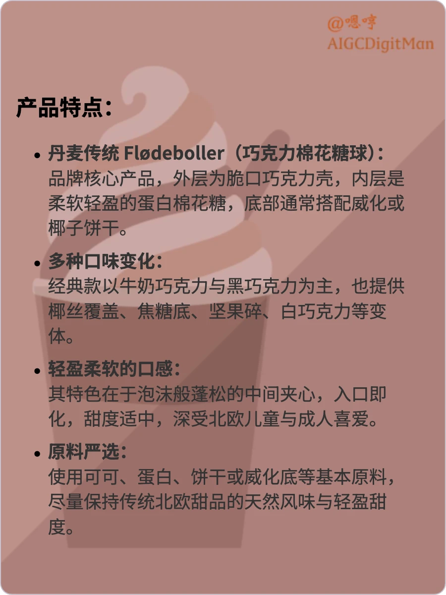 品牌在丹麦的甜食文化中占有重要地位,尤其以“Flødeboller”(丹麦著名巧克力棉花糖球)广受欢迎。