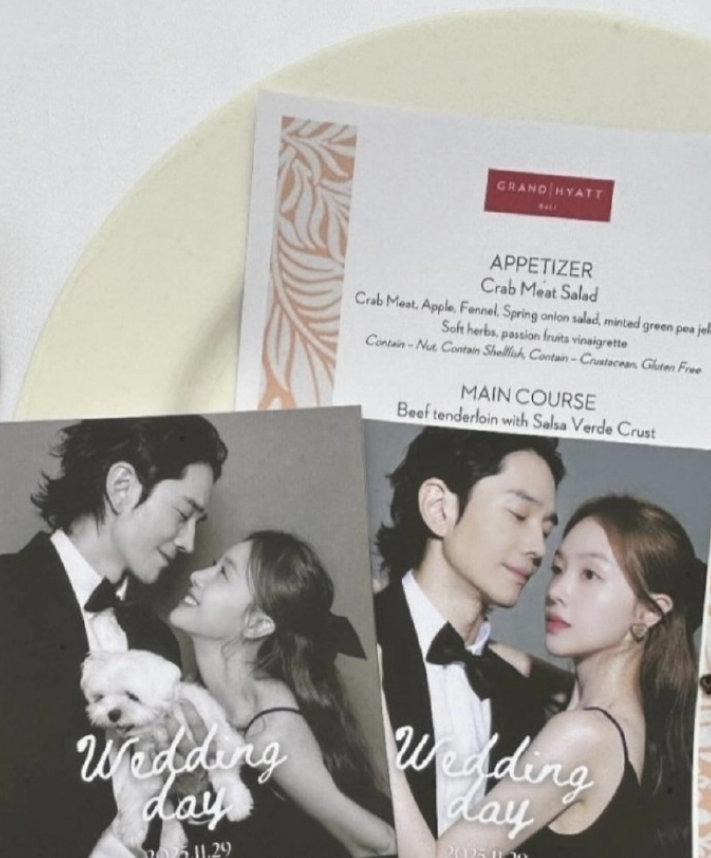 方敏雅温朱万婚纱照方敏雅温朱万婚礼现场照 11月29日,Girl’s Day方敏雅、演员温朱万在巴厘岛举行婚礼,婚礼现场照曝光,两人在花瓣中甜蜜地挽手前进。此外,婚礼物料卡片上可见他们的婚纱照,两人牵手依偎、微笑对视,好幸福的两位!