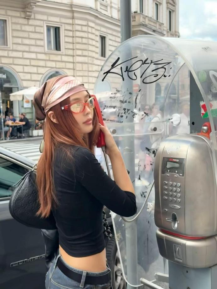 吴艳妮在成都穿着短裤大腿看起来很粗壮,表情自信又张扬