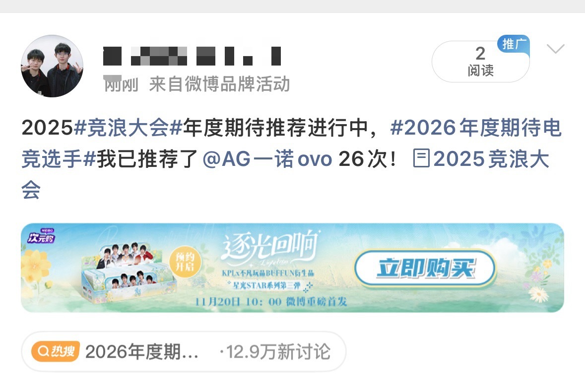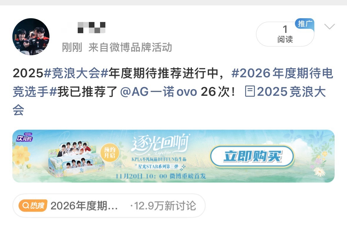 AG超玩会 🫶竞浪投票👉2025竞浪大会今天投满可投26-29票(每个🐀都不一样)今日投票已完成 130🎫✅全票打飞徐必成