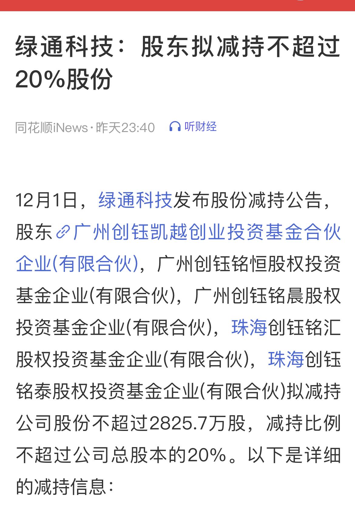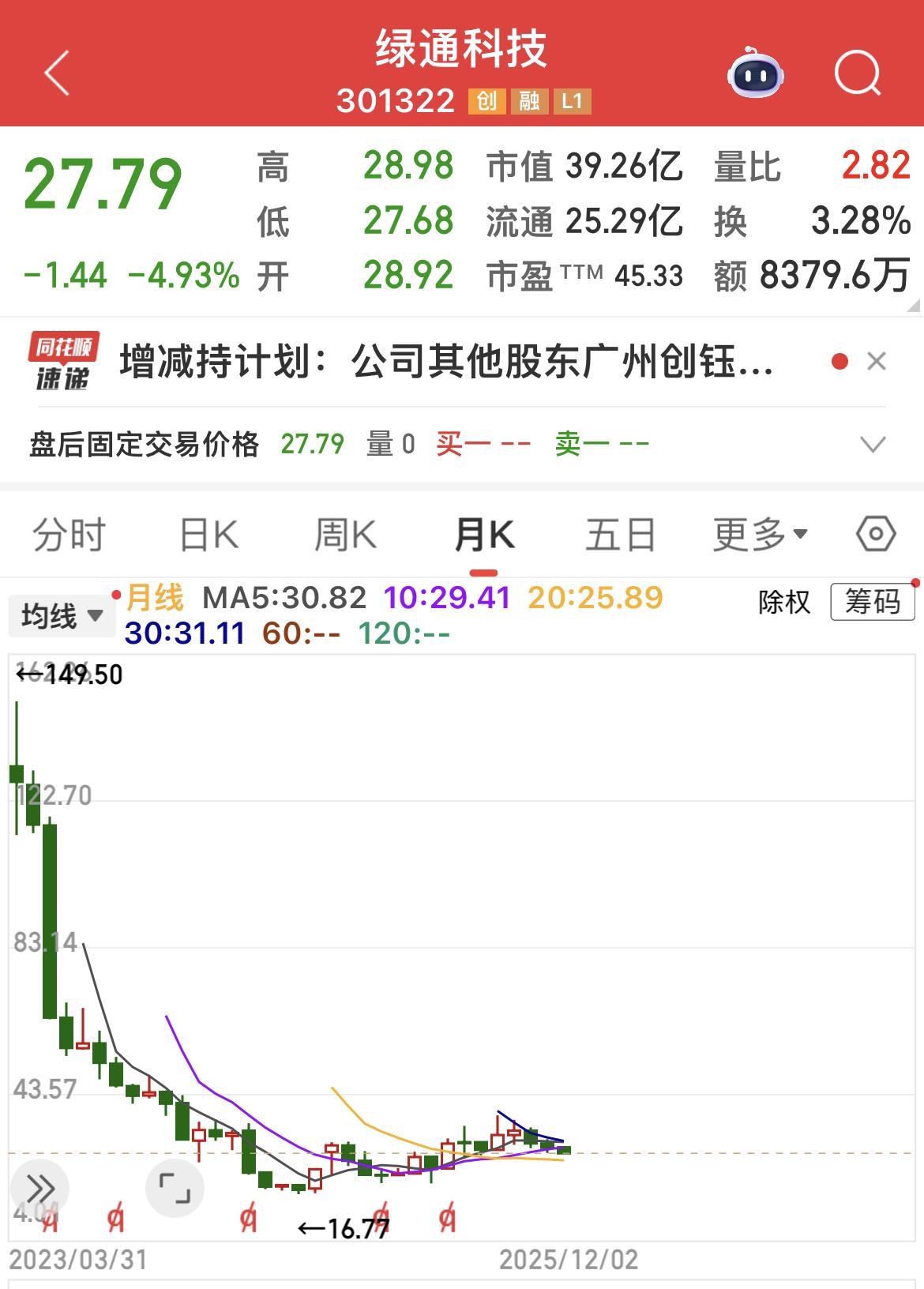 绿通科技,多位股东拟减持总股本比例20%的股份! 一次性减持公司股份五分之一! 绿通科技于2023年3月6日在创业板上市,发行价格为131.11元/股,该公司拟募集资金40,494.96万元,实际募集资金总额为人民币229,311.39万元,超募4倍多! 2023年3月9日,绿通科技盘中最高价报149.50元,为该股上市以来最高价。该股目前股价为27.79元。 该公司近三年净利润分别下滑15.64%和45.98%以及44.23%。