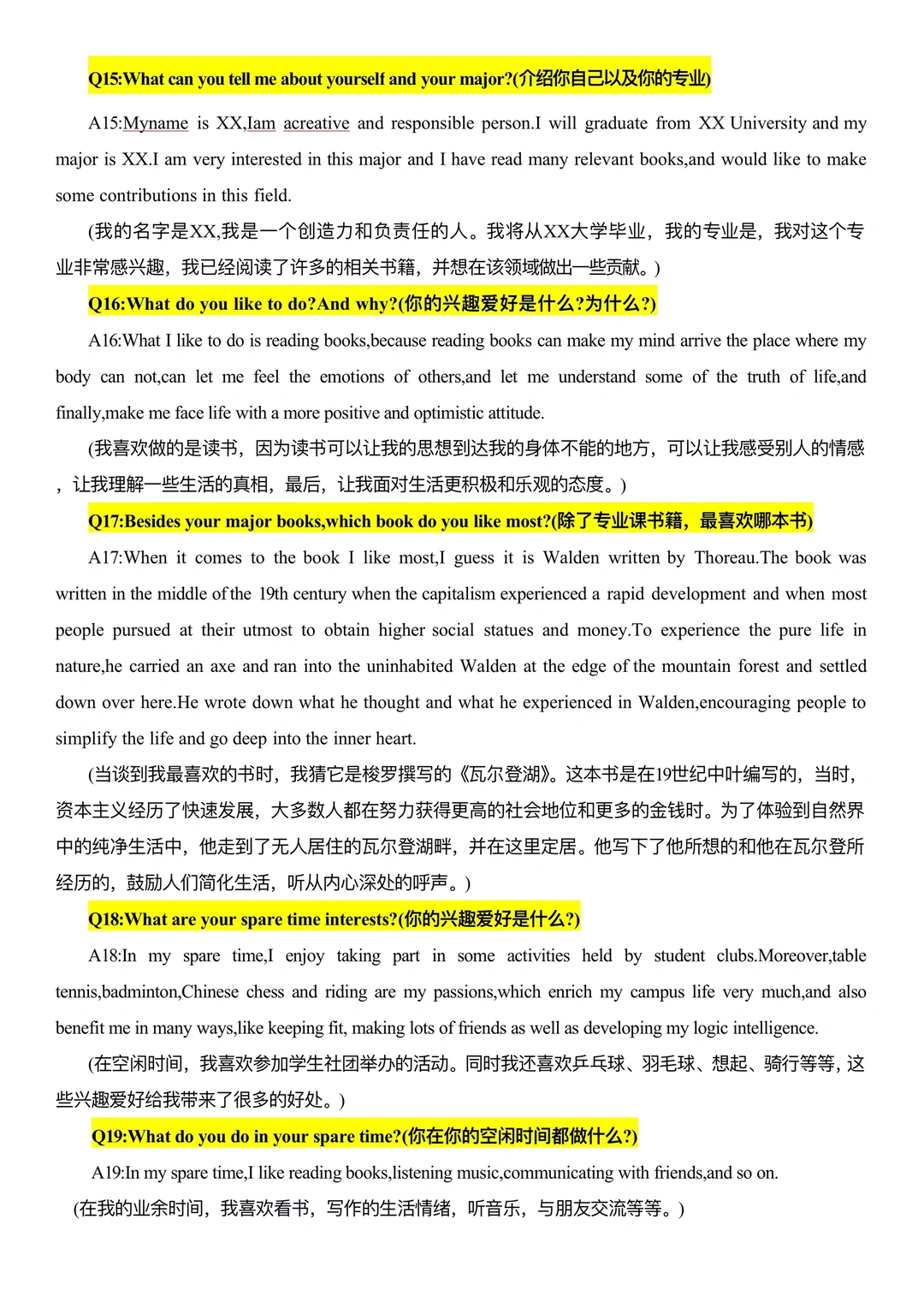Q2:Why did you choose our university?(你为什么选择我们学校?)🏫