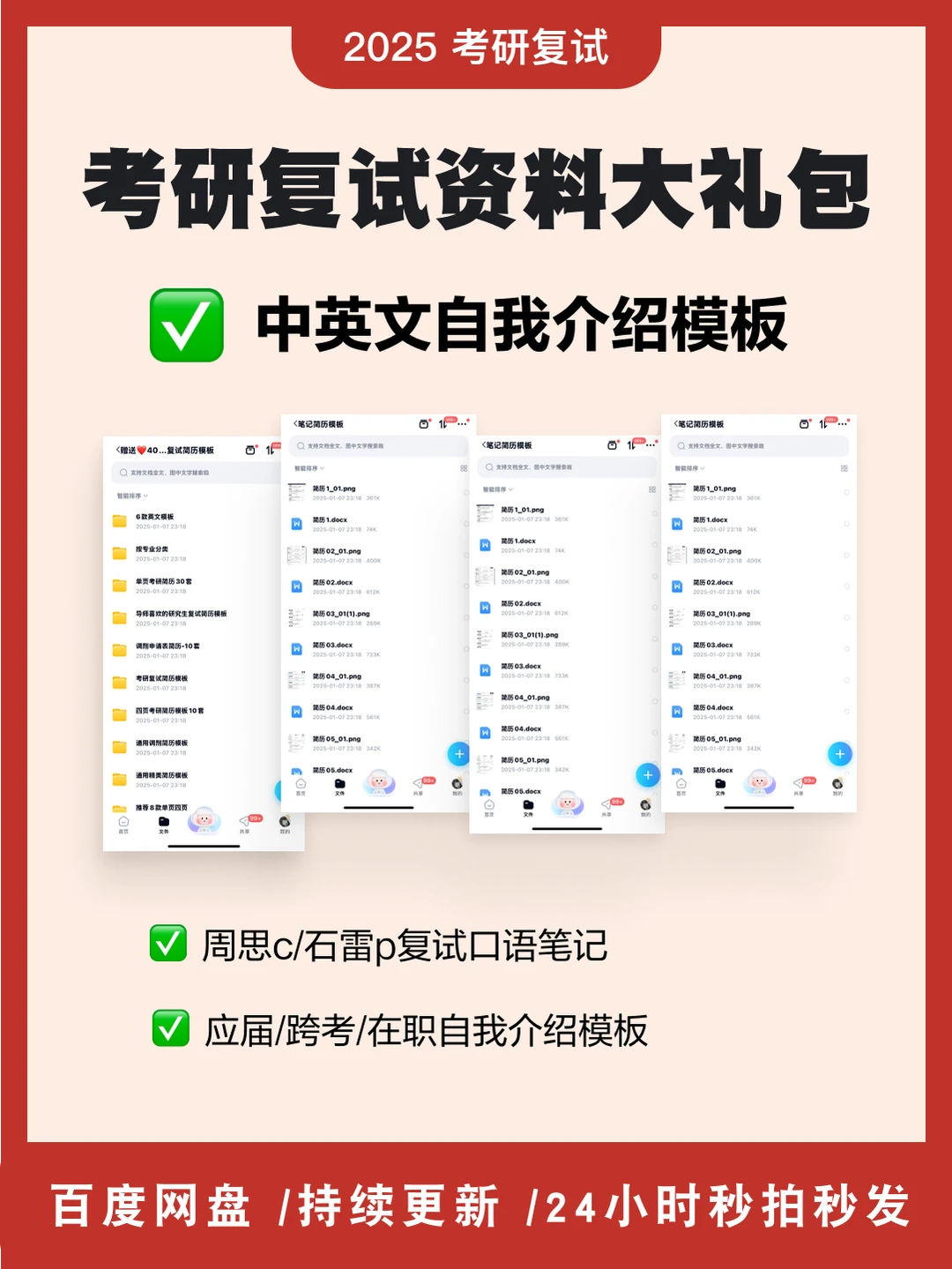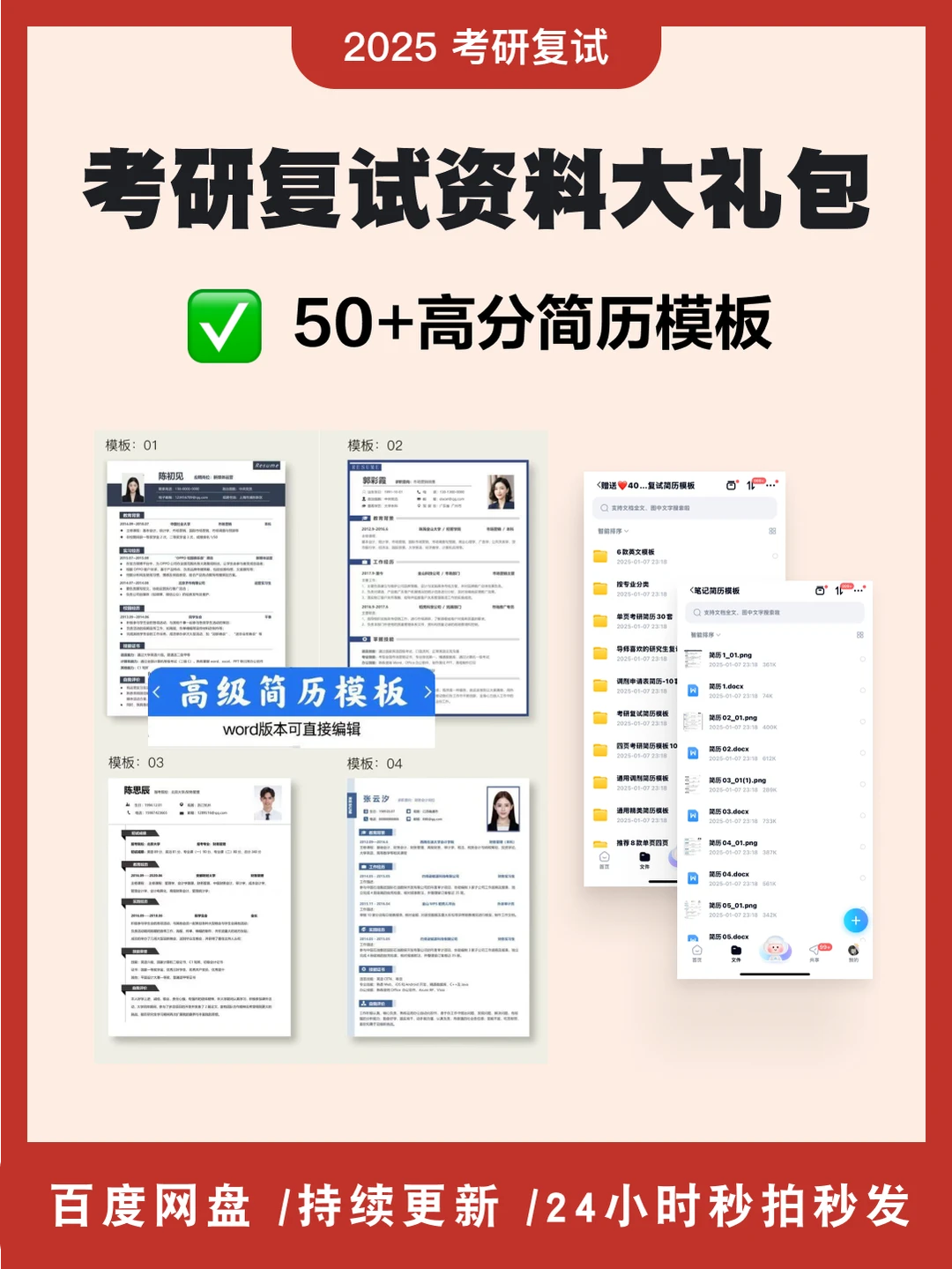 • 👉准备复试简历(大多数院校都会要求带简历。即便没有明确要求,只要不是匿名复试,准备好带上肯定是加分项,前面有分享【简历模板】,大家可以直接修改)