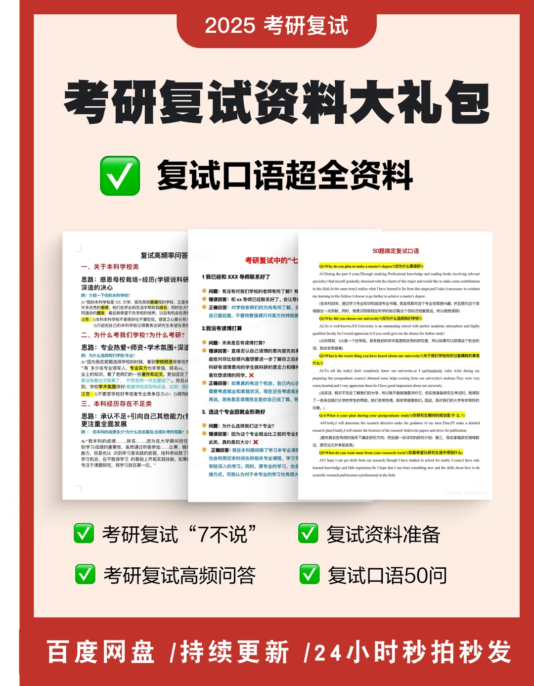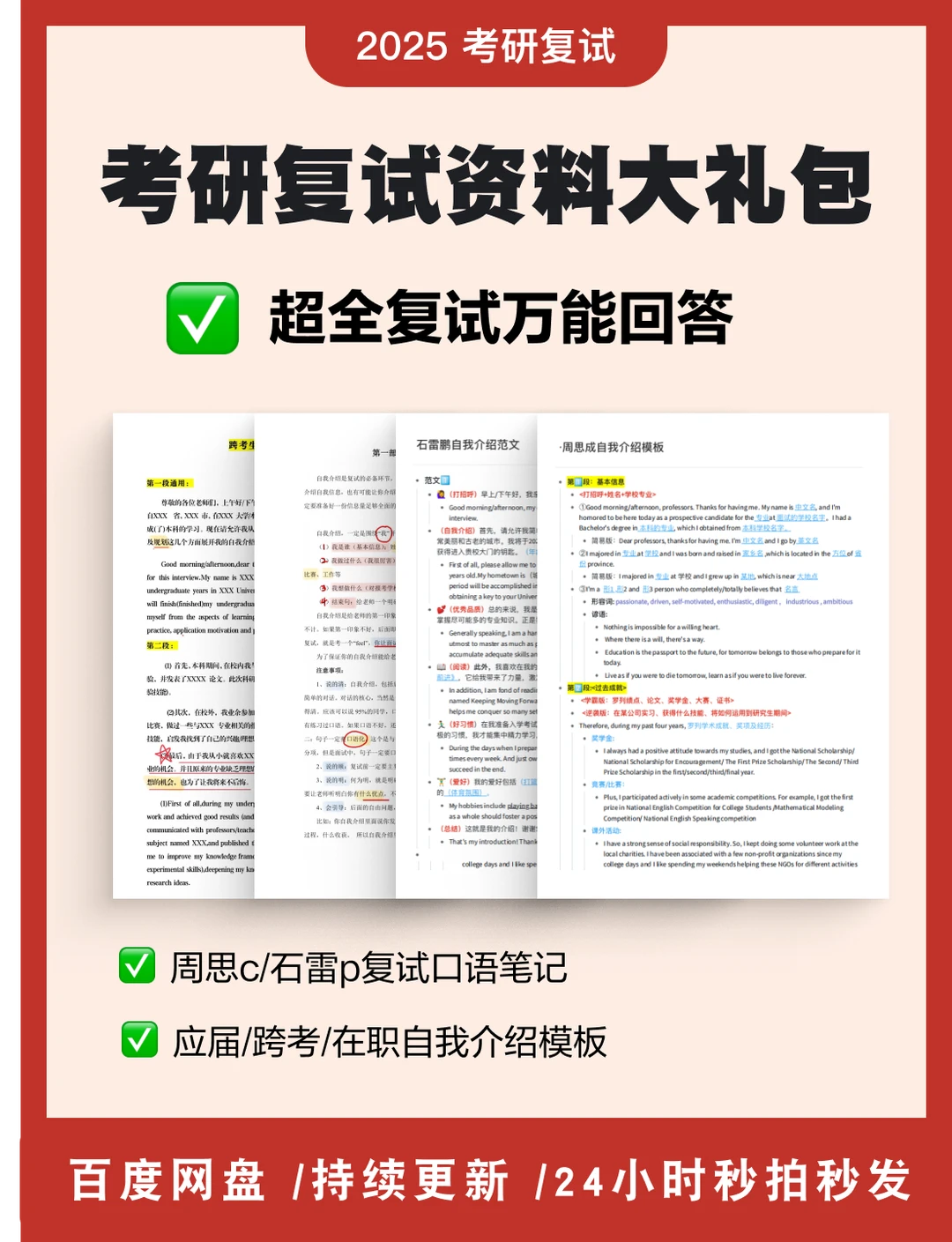 • 👉还要练习英语口语,背熟【50个常见口语问题】,并且熟悉复试可能问到的问题,把复习万能回答准备好。