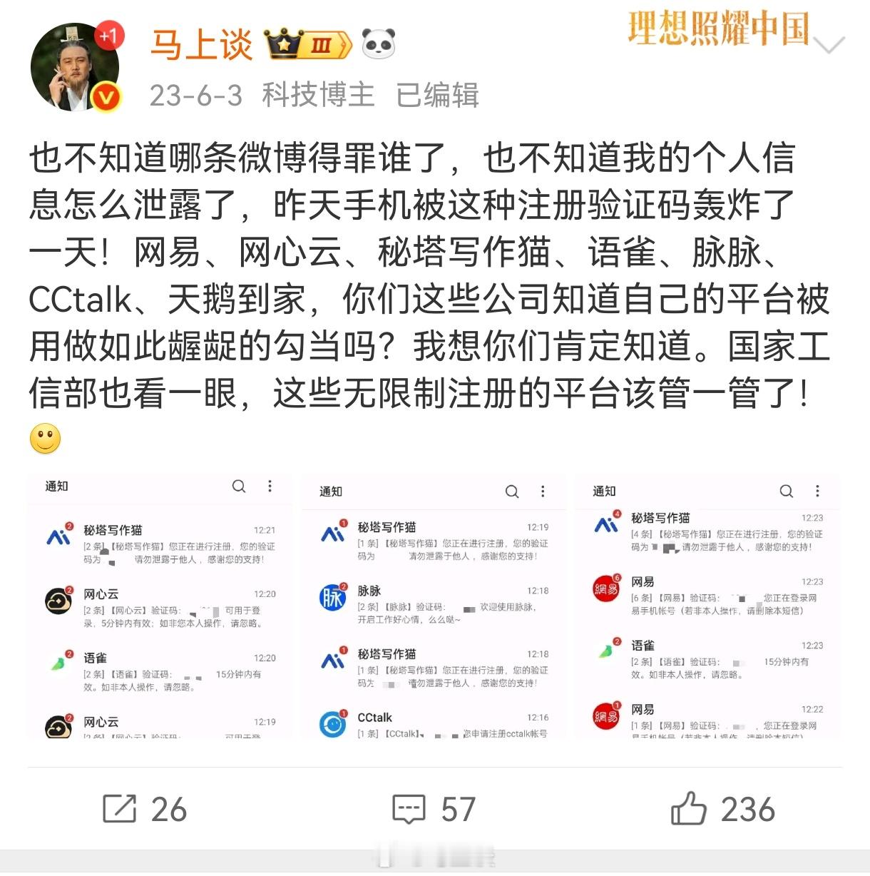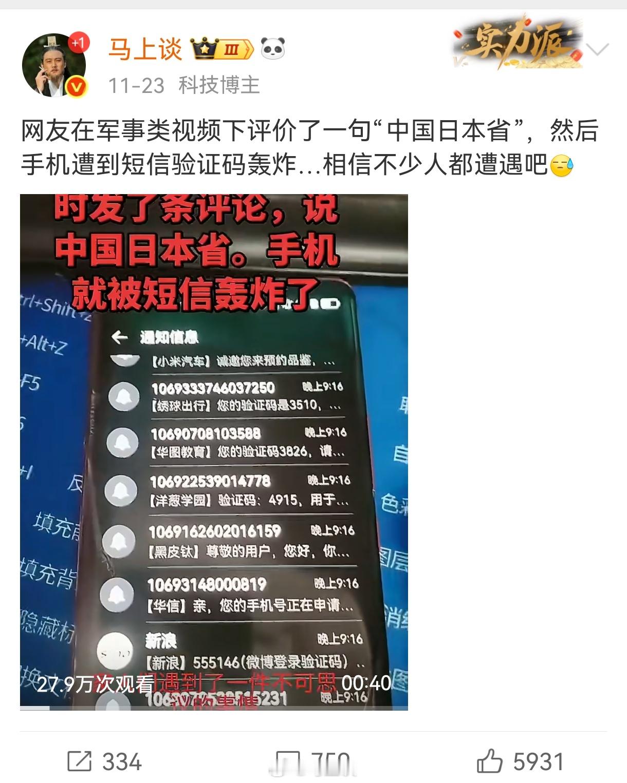 小米多位高管遭到短信验证码轰炸,微博上遭到这种骚扰的博主没有一万也有一千了,我就多次被验证码轰炸,头疼无比,毕竟;总不可能把多个网络平台给拉黑了吧?工信部门该拿出一个解决办法了…小米高管疑似集体遭遇短信轰炸