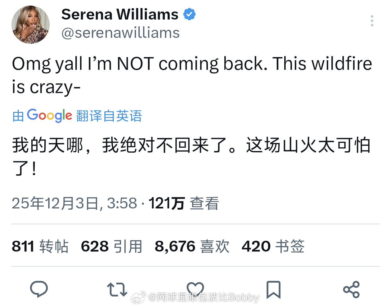 外媒传小威将在2026复出,原因是小威的名字被加入反兴奋剂系统小威发文:我绝对不会回来了……网球talking大会 网球wta