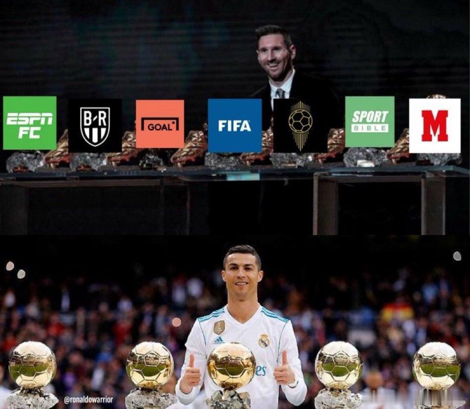 克里斯蒂亚诺·罗纳尔多获得的金球獎仍然比梅西多梅西c罗