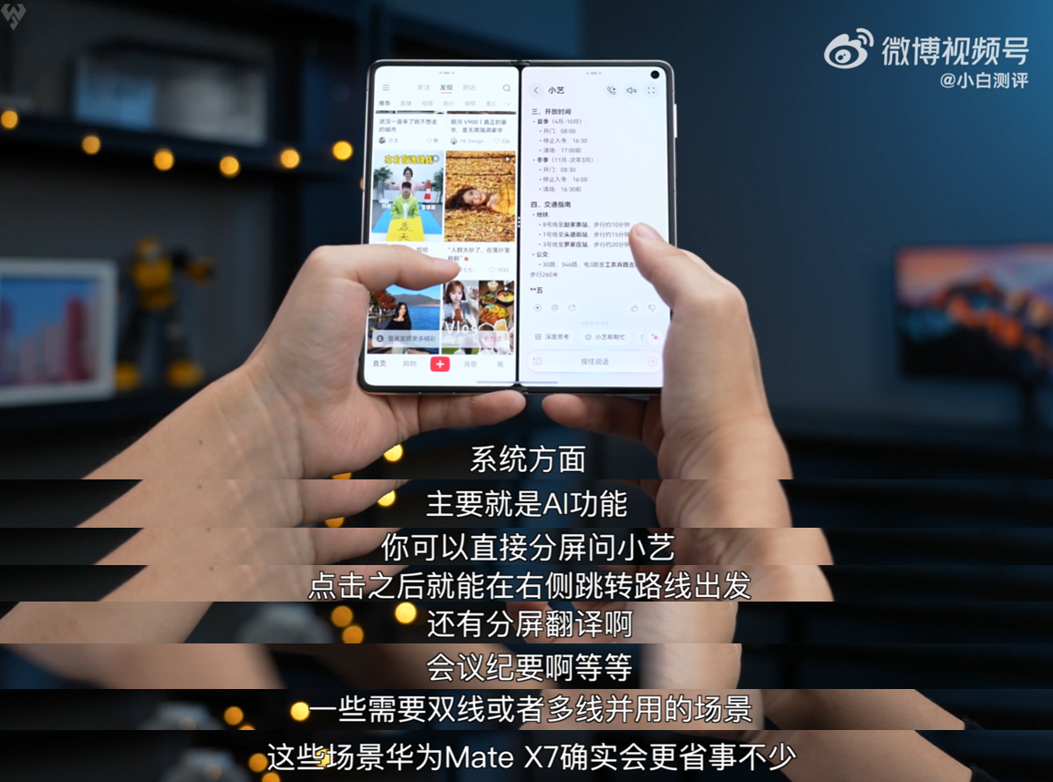 华为MateX7的大屏AI有多强 自从鸿蒙5进化到鸿蒙6,可以说AI已经深入了手机的每一个角落,并深度赋能华为 Mate X7,把折叠屏 AI 体验玩出了新高度!A2A 智能体协作打破应用壁垒,大屏加持下的高效与便捷,这种好用是越用越好用。在办公场景时小艺慧记不仅自动转写会议纪要,还能精准提取关键信息、生成待办清单,分屏同时处理 Excel 表格 + 回复工作邮件。而且跨应用拖拽文件无需反复切换,这种好用大家肯定懂得;旅行场景中一边用 AI 分屏导航让你不迷路,一边让小艺查景点攻略、订周边酒店。还可以根据偏好推荐小众玩法或者筛选高评分住宿,旅途规划全程交给小艺就好了,快捷高效不踩坑。日常使用场景拍合同、票据、身份证等各类证件,智能识别直接转文档,自动排版、修正歪斜,清晰度拉满无须担心看不清。还支持多语言互译、云端同步随时调取。现在华为 Mate X7首销福利拉满,如果想解锁小艺的智能高效生活,这款折叠旗舰非常值得冲~ 对了记得去线下体验体验,有惊喜哦~
