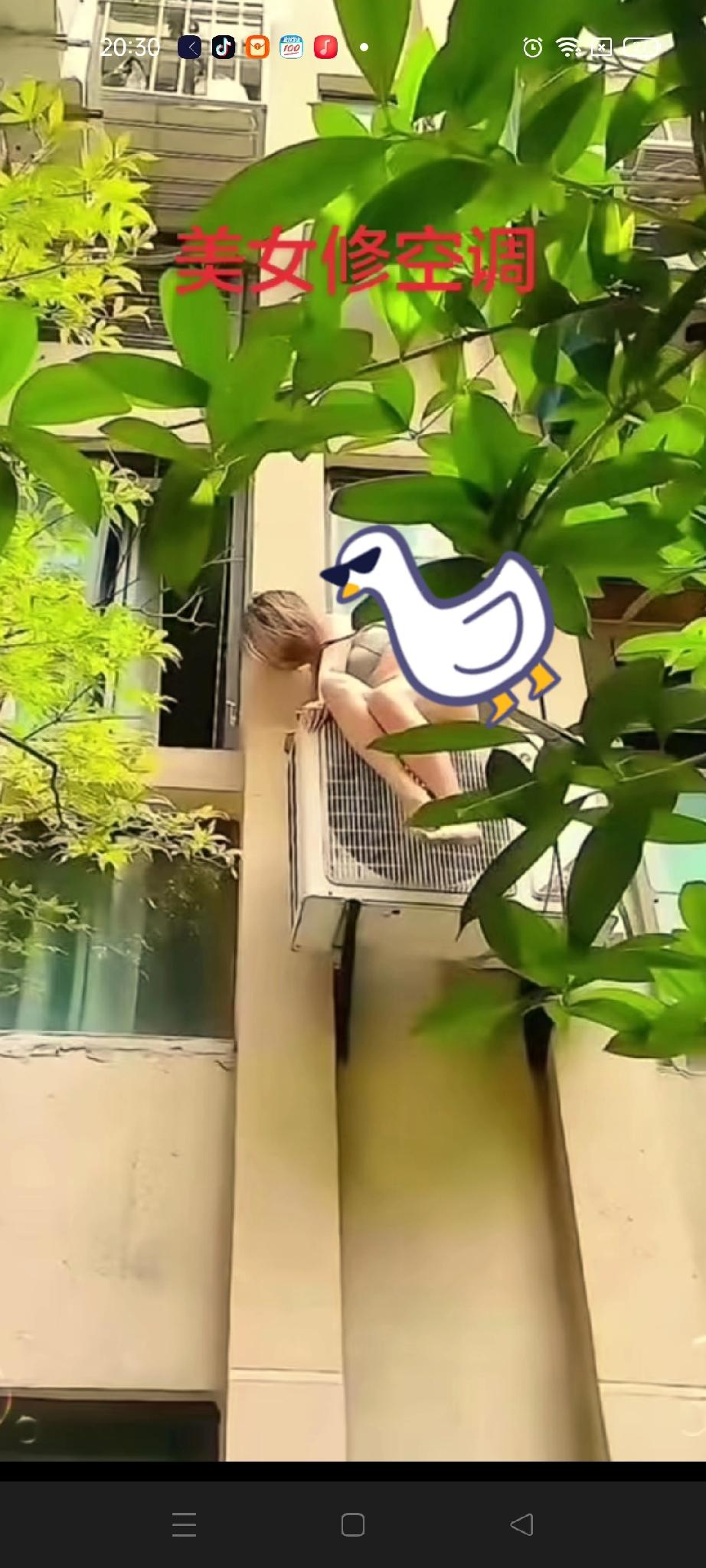 今天刷到一个朋友发布视频一位女士在空调外机上修空调,大型家用电器还是交给专业人士
