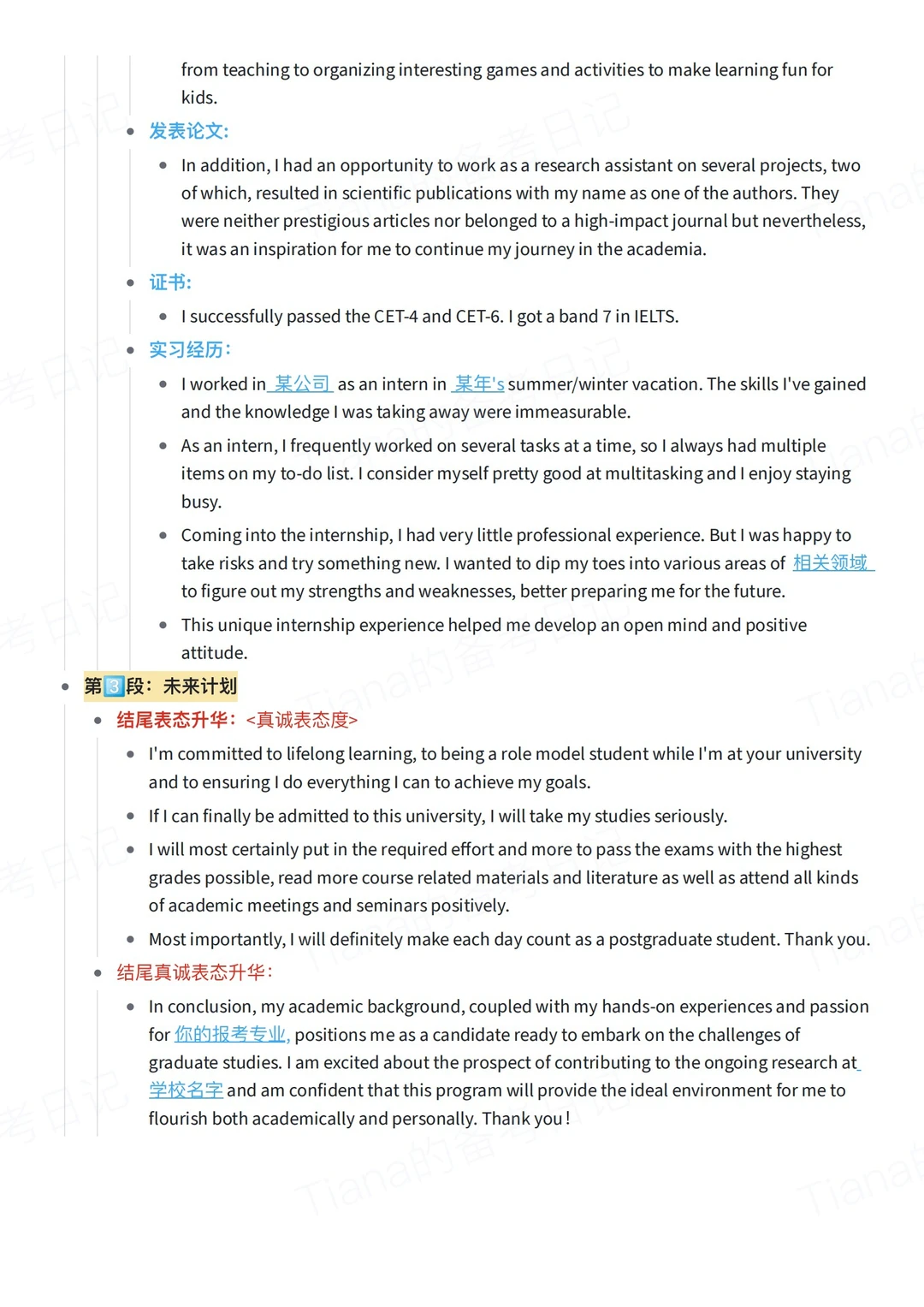 🌷英⽂⾃我介绍(3-5分钟)🌷 1.🙋常⻅的问句: ▪️Please introduce yourself briefly. ▪️ Tell us about yourself. ▪️ Can you talk about yourself? ⚠️注意 不要⽤英⽂复述中⽂简历 不要谈论太多个⼈或家庭⽣活 2. ⾃我介绍回答思路: 第1️⃣段:基本信息 第2️⃣段:过去成就 第3️⃣段:未来计划