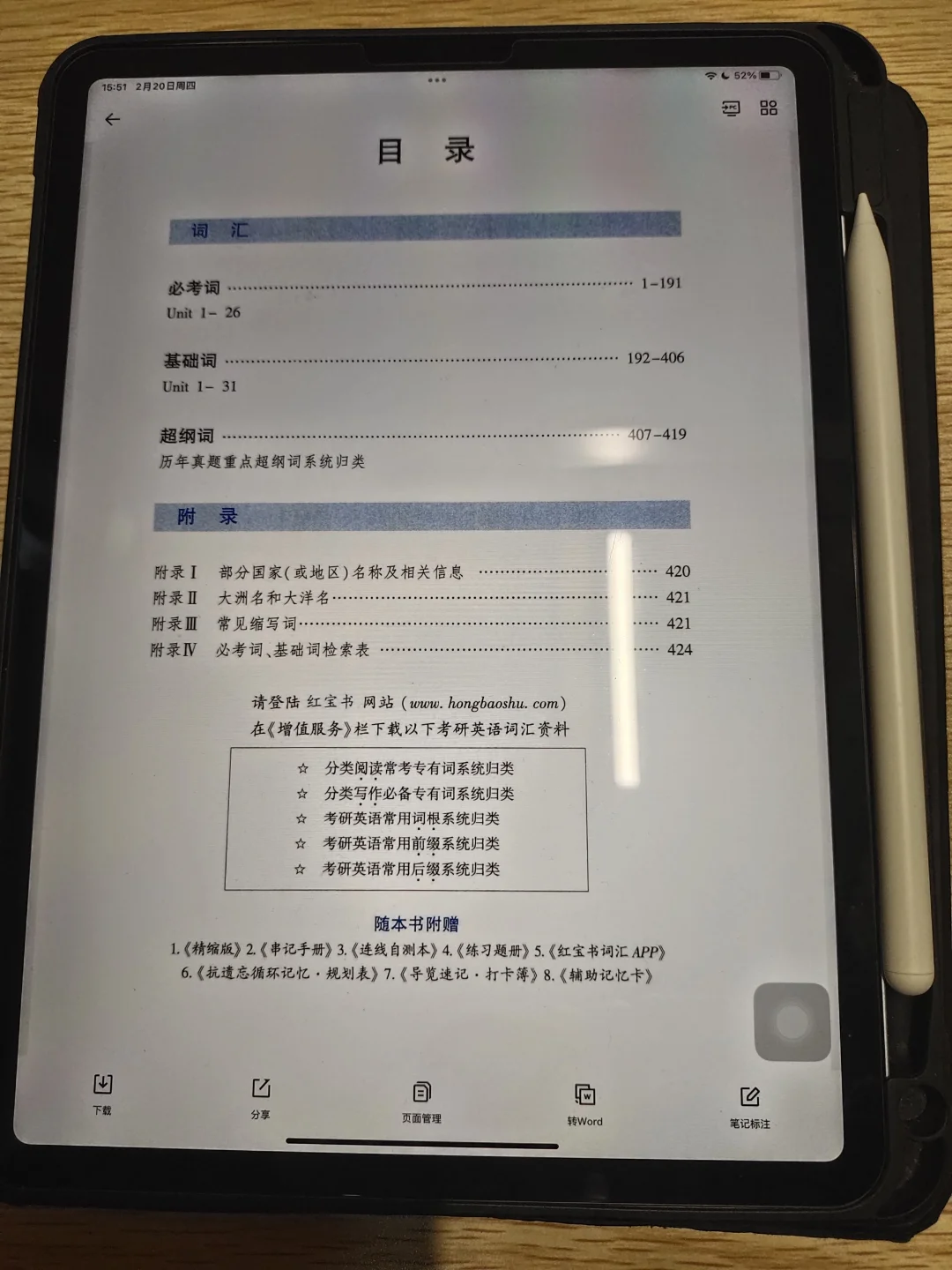 之前一直用纸质版背单词,但厚厚的几本书带去图书馆实在太重啦。😫但是自从有了 ipad,我才发现无纸化学习真的太香了!❗️❗️ 在 ipad 上可以随意涂涂画画,还能擦除,用遮盖功能可以挡住中文,检测背单词成果,简直不要太棒。 在上买了电子版红宝书,可以直接导入 ipad 学习。📚有六本全套电子版书籍,还赠送了带背笔记,真的太赞啦。😍 26考研 考研英语 红宝书 考研英语单词 背单词 无纸化学习 考研红宝书