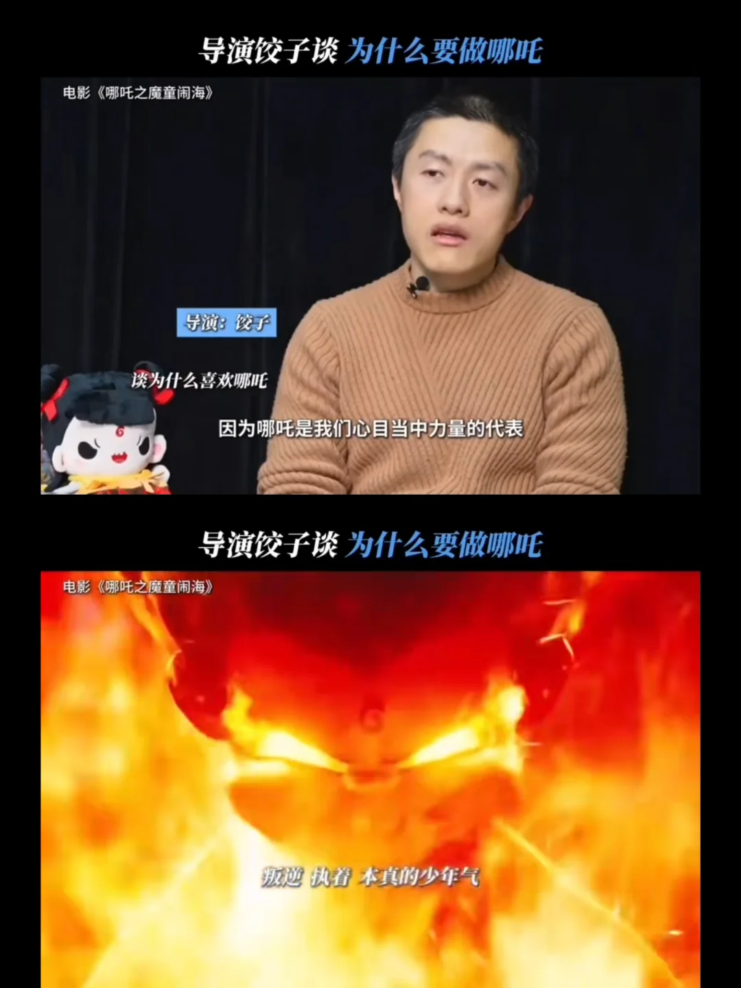 饺子:因为哪吒是我们心中力量的代表,大家都会妥协,大部分的聪明人,碰一碰之后觉得疼,就会缩回来,但哪吒敖丙这样的,还照自己的方向碰下去,叛逆、执着、有本真的少年气。