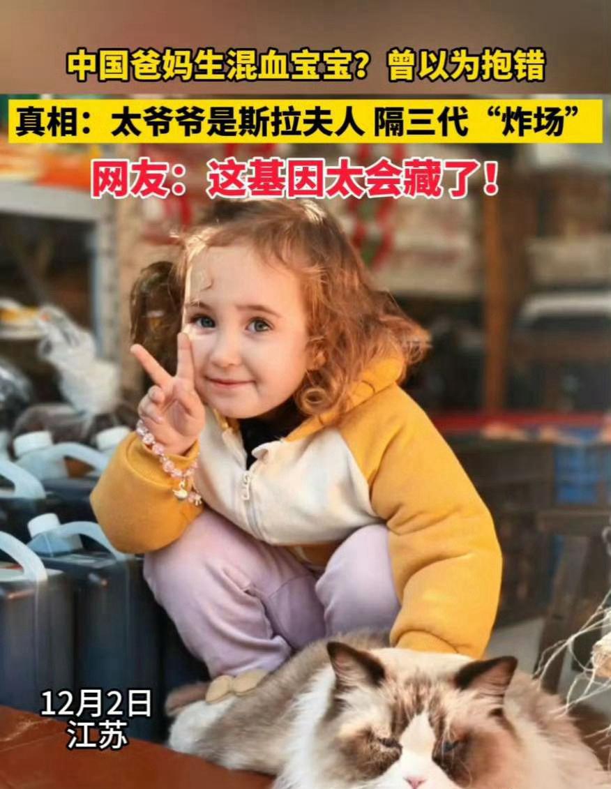 江苏盐城一对黑发黑眼的中国夫妻,居然生下了个金发碧眼的“洋娃娃”,这事儿一传开直接在网上炸了锅。夫妻俩都是土生土长的本地人,家里三代也都是典型的东亚长相,孩子刚生下来时皮肤就特别白,等长到八个月,眼睛慢慢变成了清澈的蓝色,周岁后头发更是越涨越金黄,跟爸妈的外貌反差特别大。一家人先是又惊又喜,接着就开始犯嘀咕,甚至怀疑是不是在医院抱错了,最后实在没办法,干脆去做了亲子鉴定,结果显示孩子跟夫妻俩的亲子匹配度高达99.99%,确实是亲生的。 直到家里的长辈提起往事,大家才解开了这个谜团。原来孩子的太爷爷是百年前流落中国的斯拉夫人,后来在当地成家立业,只是这金发碧眼的基因属于隐性基因,在爷爷和爸爸两代人身上都被黑发黑眼的显性基因压制着,一直没显现出来,没想到跨越四代后,居然在这个女婴身上神奇“觉醒”了。遗传学上这叫隔代遗传,就像基因在玩接力赛,太爷爷的基因被揣在兜里传了三代,到第四代才终于跑了出来,这种概率低得堪比中彩票头奖。 其实这事儿最让人感慨的,不只是基因的神奇,还有网友们的反应。一开始好多人凭着外貌就瞎猜,有人说孩子妈妈有问题,有人说医院抱错了,甚至还有人说亲子鉴定报告是假的。这种无端的揣测真挺让人寒心的,亲子关系哪里是靠长相就能判断的?夫妻俩白天黑夜地照顾孩子,这份亲情比任何外貌特征都真实。好在后来真相大白,更多人开始感叹生命的奇妙,还有不少网友分享自家的经历,说自己的自然卷、双眼皮都是隔代遗传来的,原来每个人的身体里都藏着家族的基因密码。 更重要的是,这事儿也打破了“纯血统”的刻板印象。咱们常说自己是汉族,但实际上,千百年来多民族融合早就刻进了每个人的基因里,所谓的“纯种”根本就是伪命题。这个宝宝虽然长着“外国脸”,但喝着长江水长大,听着江苏方言,吃着家乡辅食,骨子里满是中华的烟火气。她的出生就像一面镜子,照出了有些人心底的偏见,也映出了更多人对多元文化的包容。 基因从来都不是简单的复制粘贴,它更像是祖辈留给我们的时光礼物,藏着跨越百年的家族记忆。这个金发碧眼的女婴,既是斯拉夫基因的延续,也是中华文化的传承。不知道你身边有没有这种神奇的隔代遗传现象?你觉得这种跨越百年的基因“觉醒”是不是特别浪漫?欢迎在评论区聊聊你的看法。 来源:河南手机报