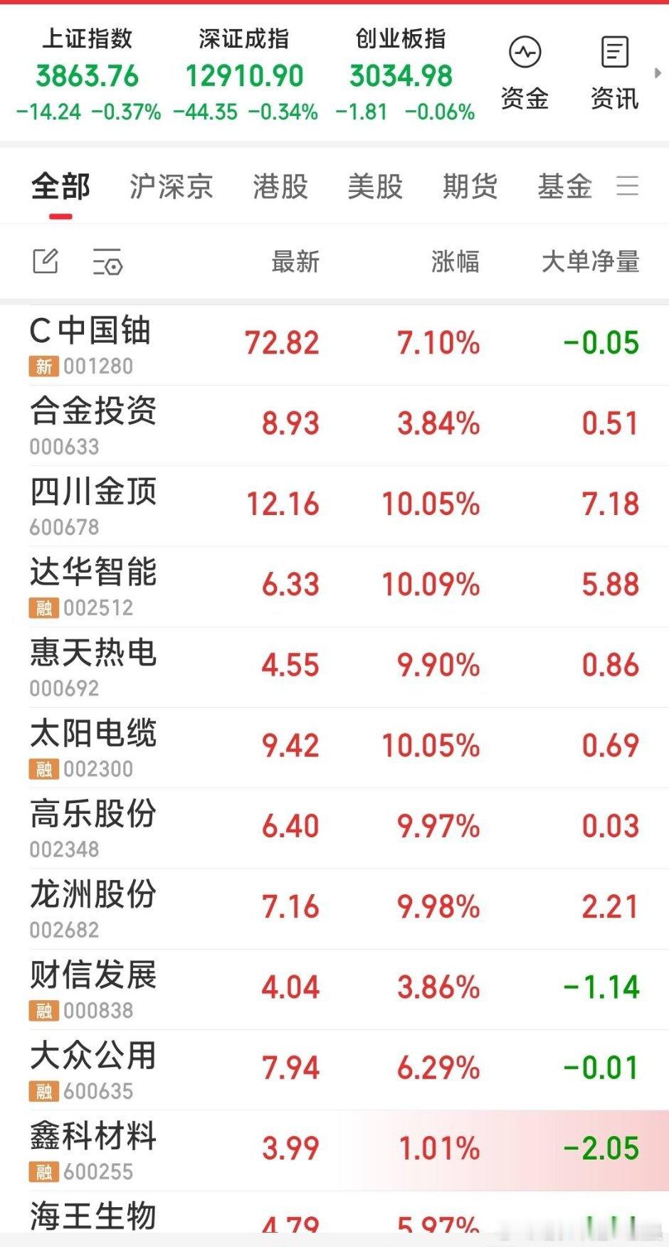 【大换手】今天关注了惠天热电,财信发展,太阳电缆,高乐股份,龙洲股份。原票仅留下