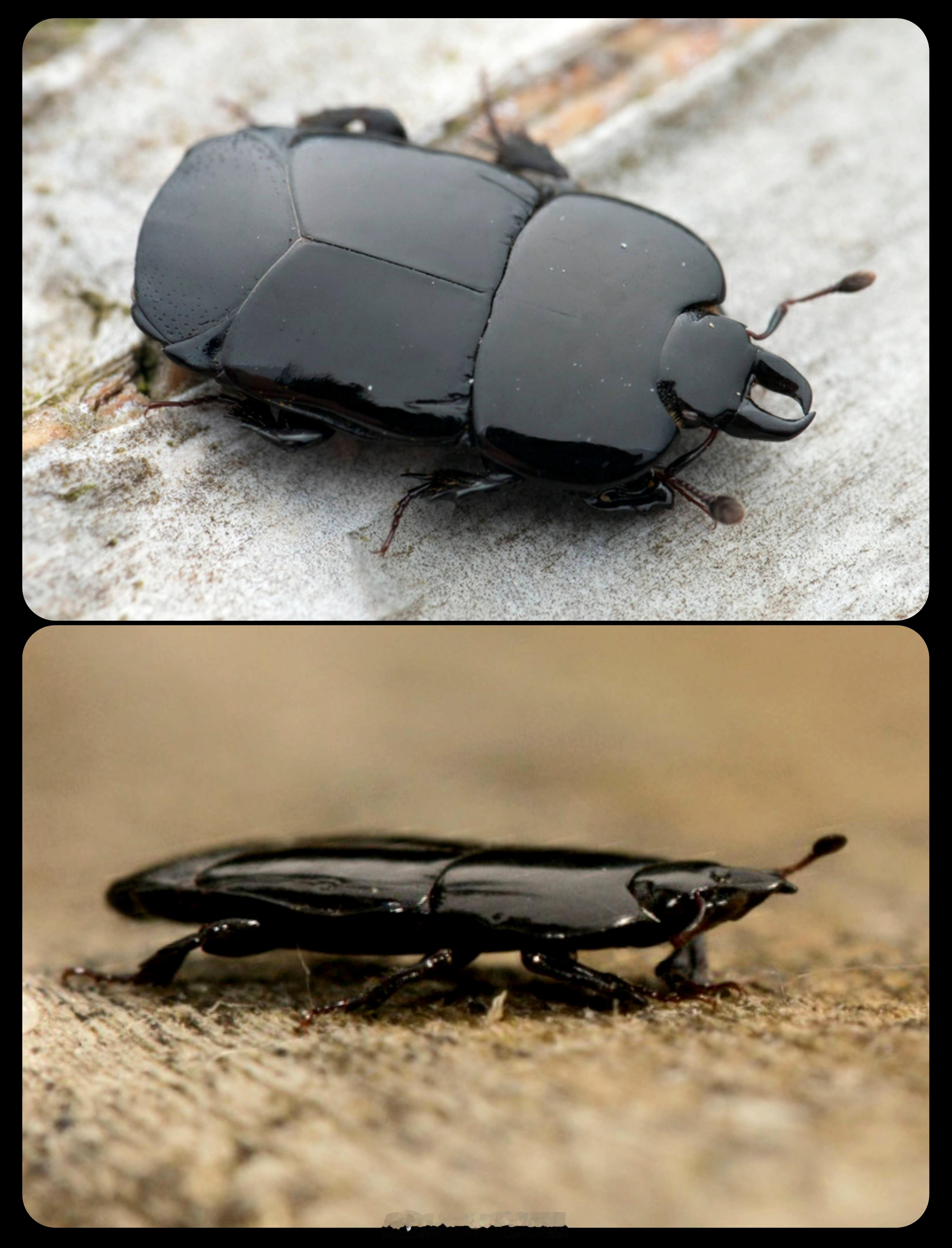 扁平小丑甲虫:这些甲虫具有非常薄而扁平的形状,使它们能够在死树和垂死树的树皮下滑动,以其他无脊椎动物的幼虫为食