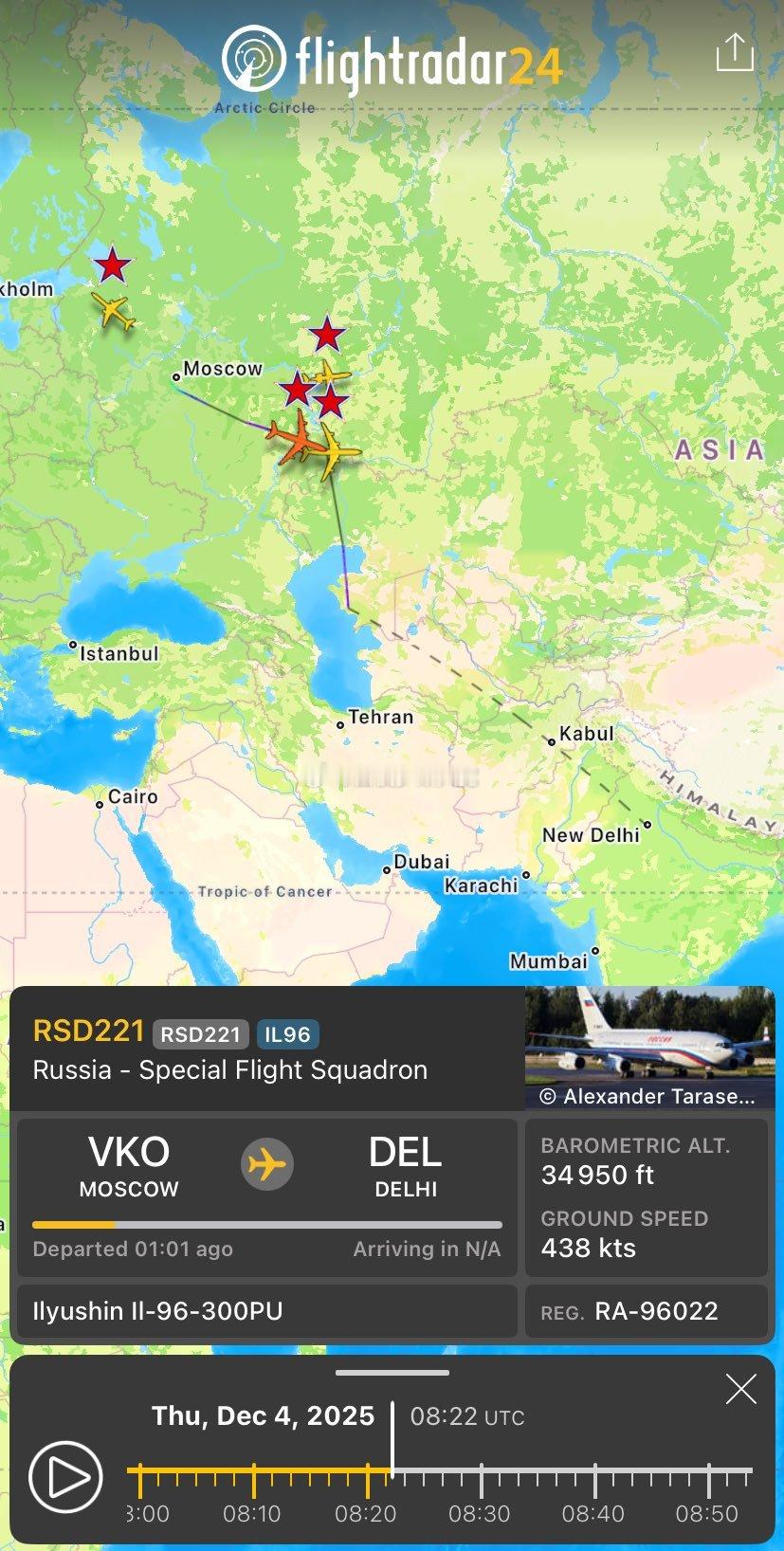 12月4日,俄罗斯总统普京正在前往印度进行为期两天的访问。俄罗斯政府专用座机伊尔-96-300PU(RA-96022)和伊尔-96-300PU(RA-96025)进入哈萨克斯坦领空。12月3日在孟买发现了RA-96023 。 俄罗斯总统普京访问印度