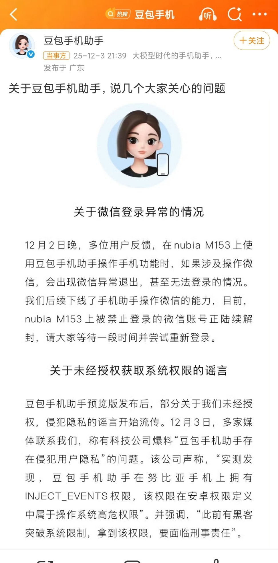 #豆包AI手机实测##豆包手机# 豆包手机这下火了,最大赢家应该是nubia吧?!手机一上市后很快就售罄,在二手平台甚至还要加价400-500元才能买到。谁能想到,在高度成熟、白热化的中国手机市场,居然还会突然有一款这样现象级的手机产品。这个品牌在中国手机市场的存在度比较低,通过和豆包的合作,率先打出了AI手机这个概念,而且多次上热搜了。Ai手机,简单理解,就是AI助手植根于操作系统层面,权限很高,你给AU助手发语音消息,它就可以直接帮你操作了。如你给AI助手说:打开微信,给赵宏民回个消息,说信息收到了,明天见。它直接就自动去打开微信操作了。另外诸如点外卖、淘宝购物等。