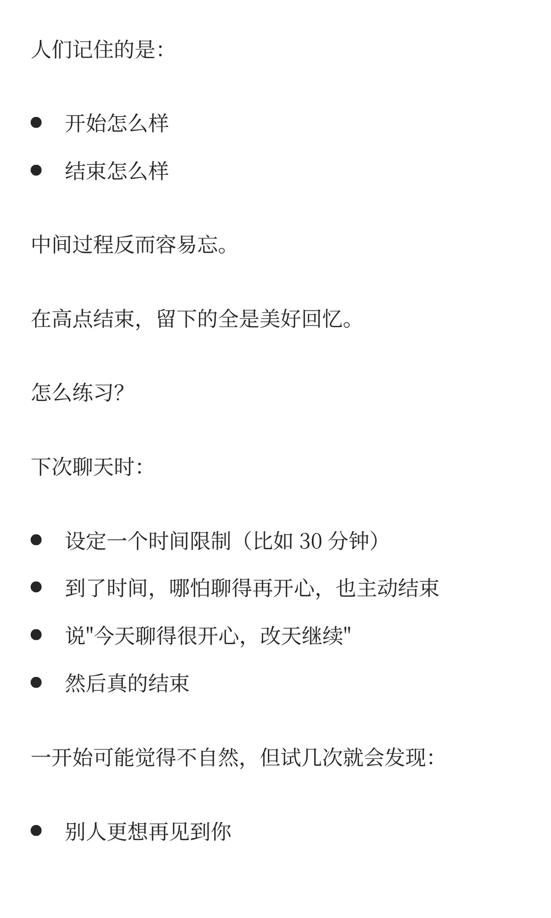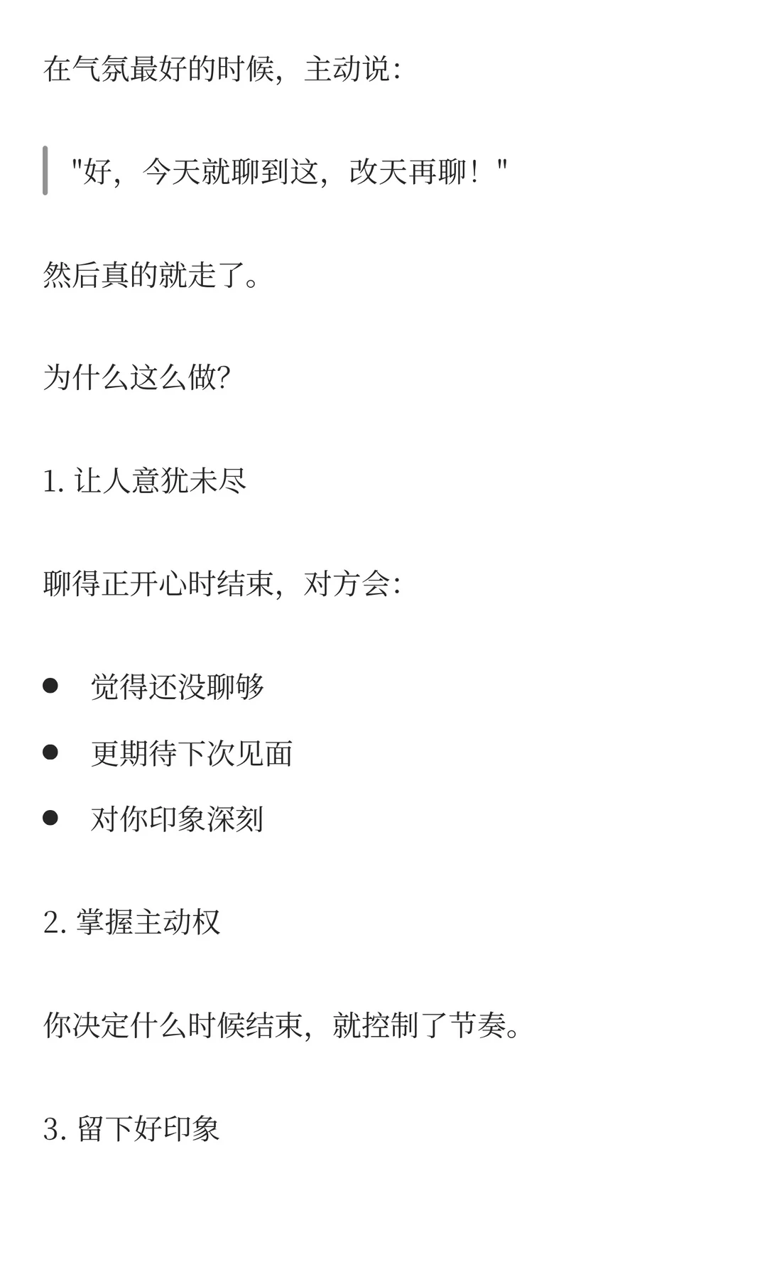 ✅ 气氛最好时:"今天聊到这,改天再聊!"