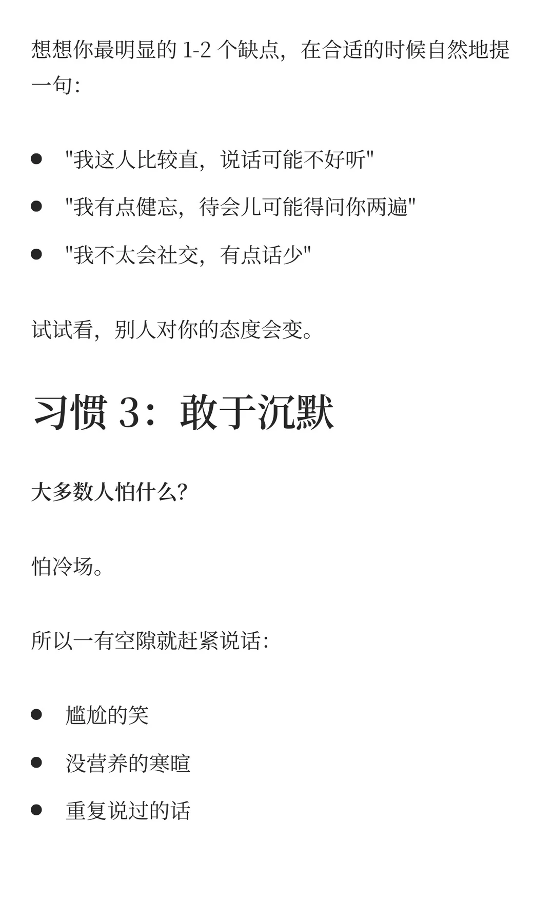 💡 试试: 被问问题先停3秒再答 说完话停一下,别急着补充