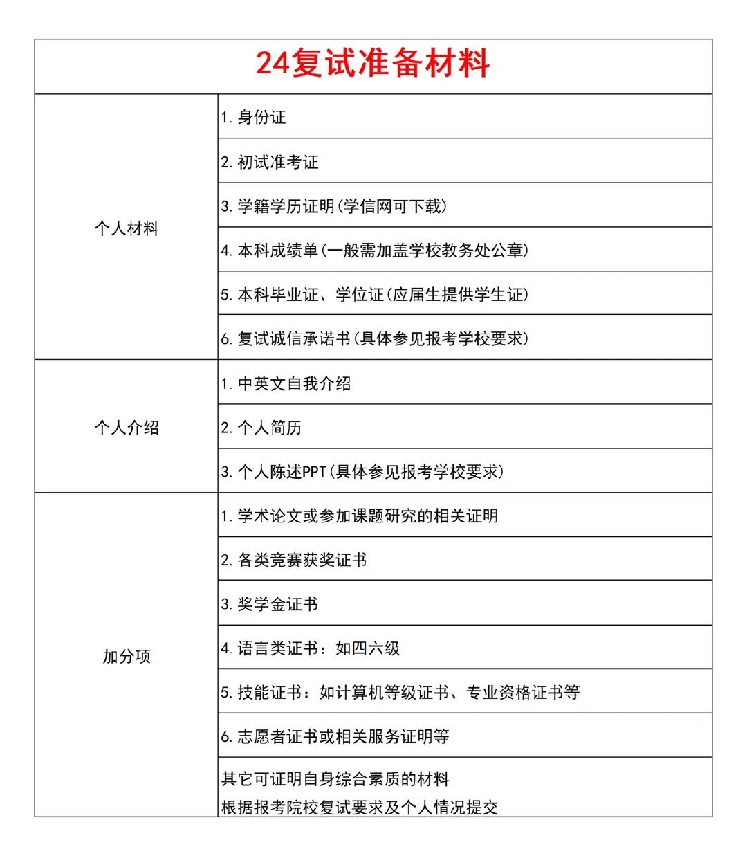 🌷24考研复试准备材料🌷