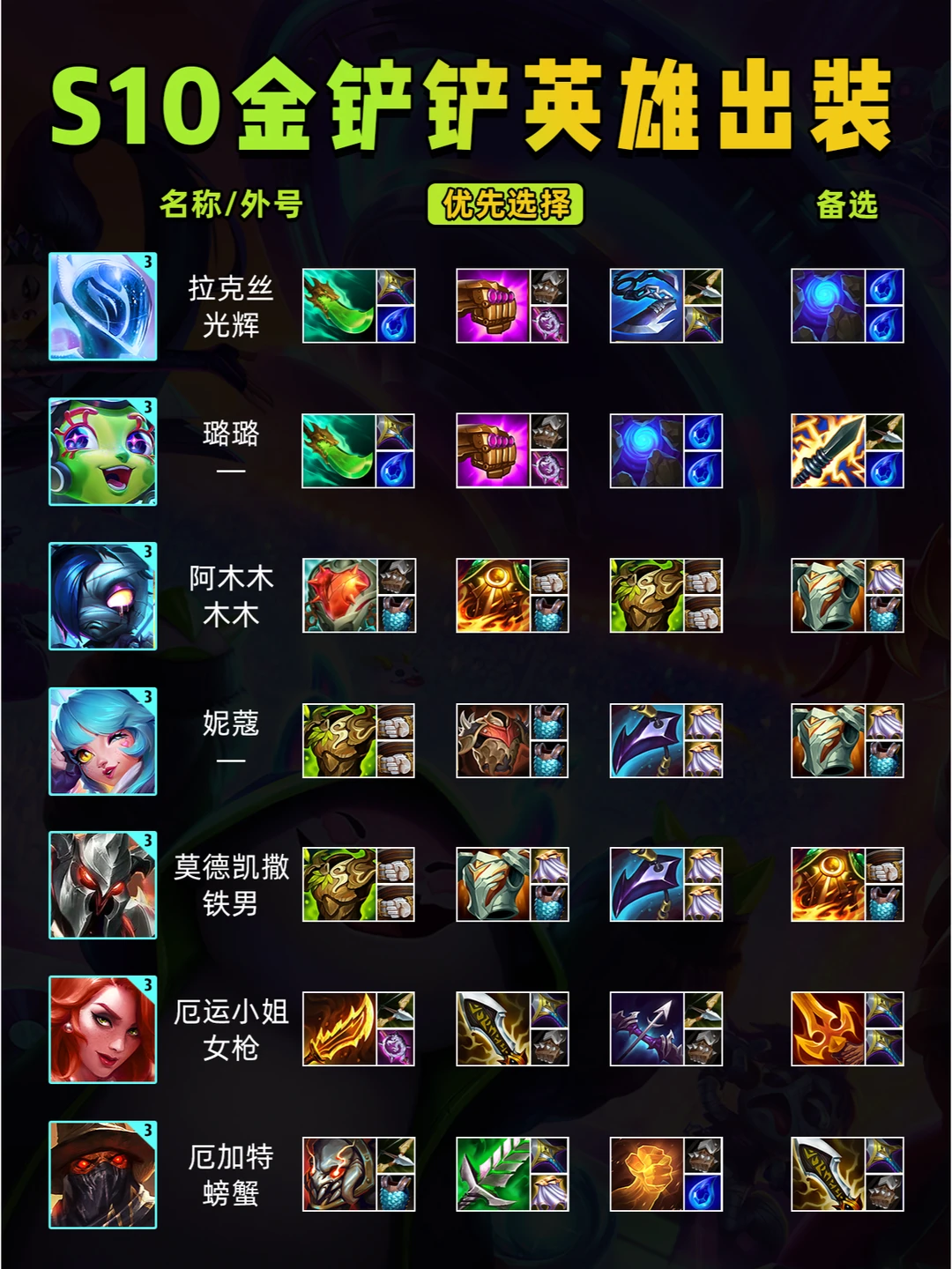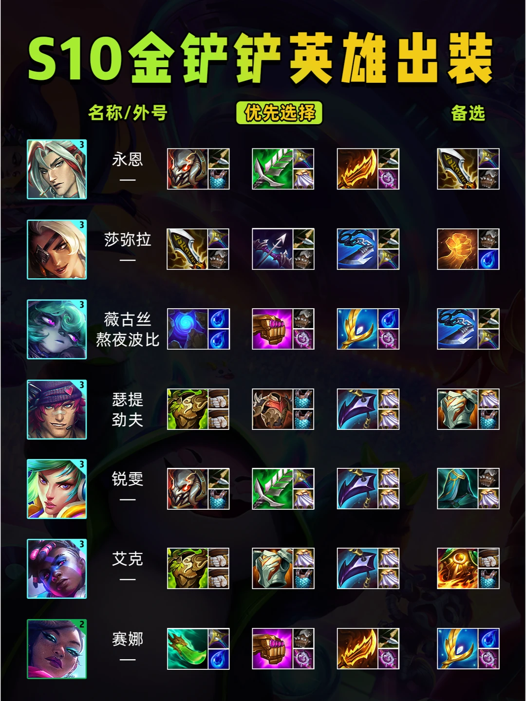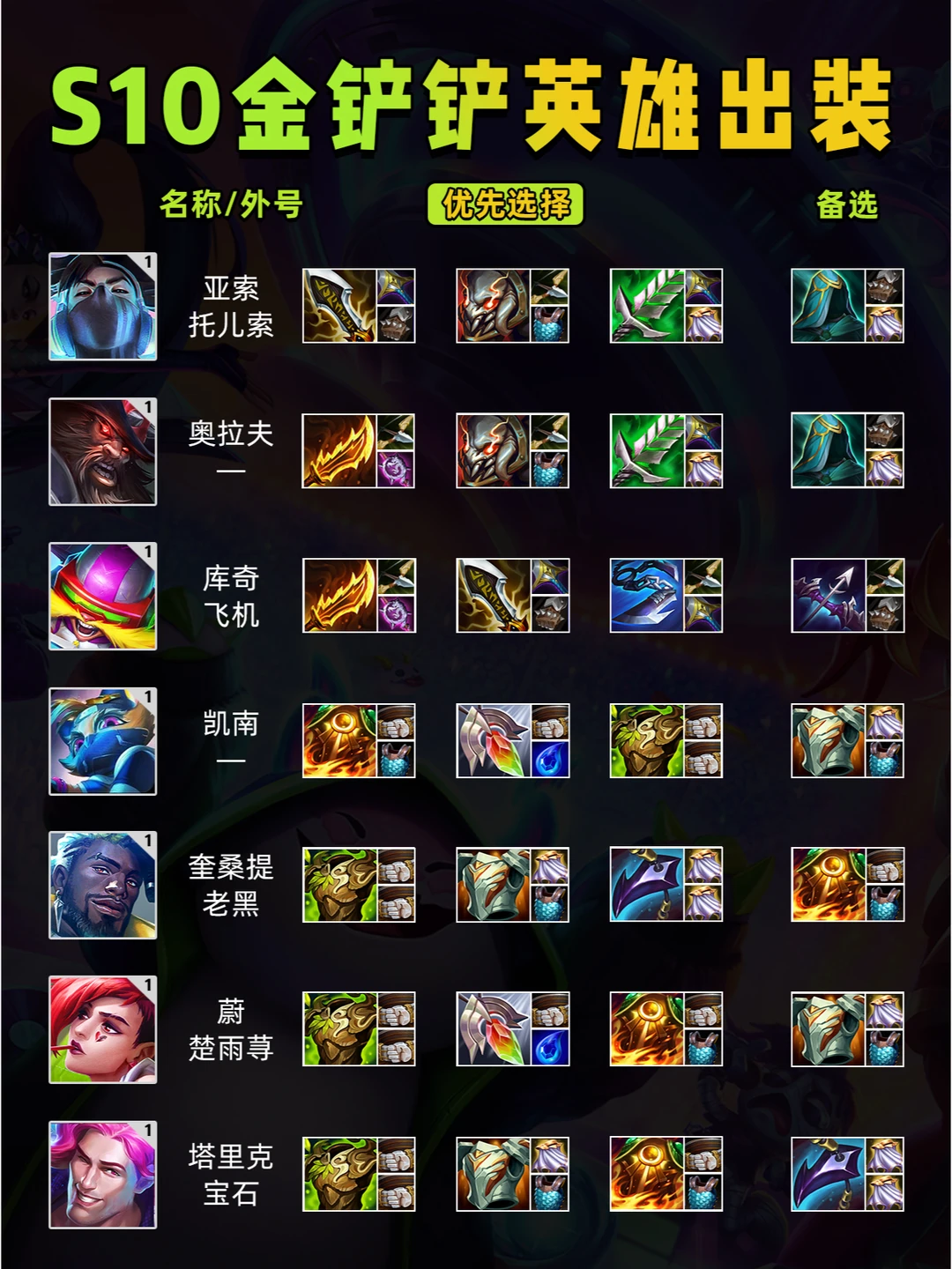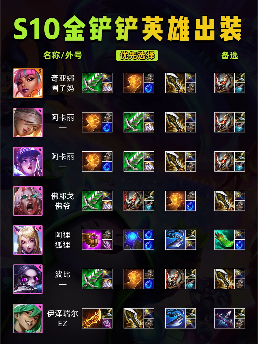 S10金铲铲新赛季英雄外号和装备推荐来啦!