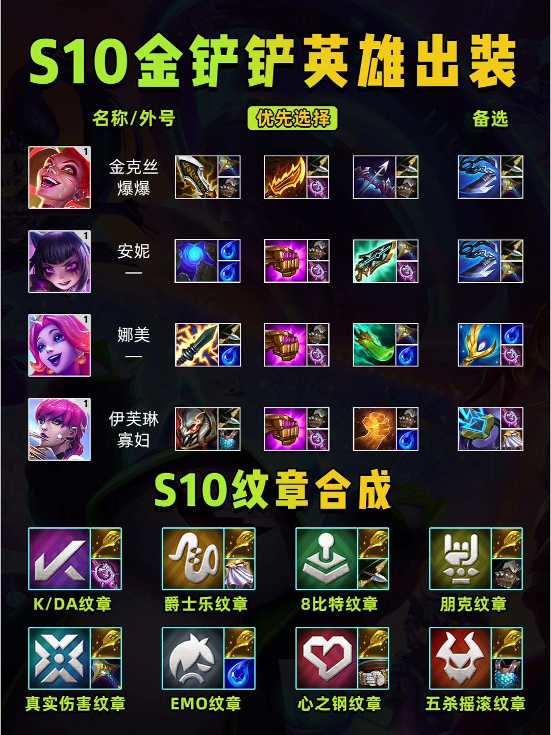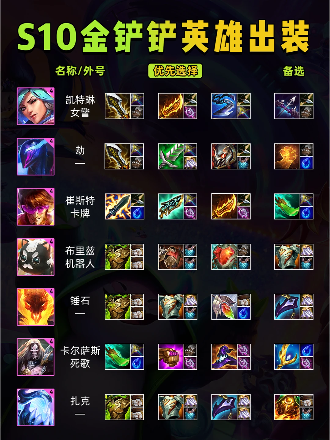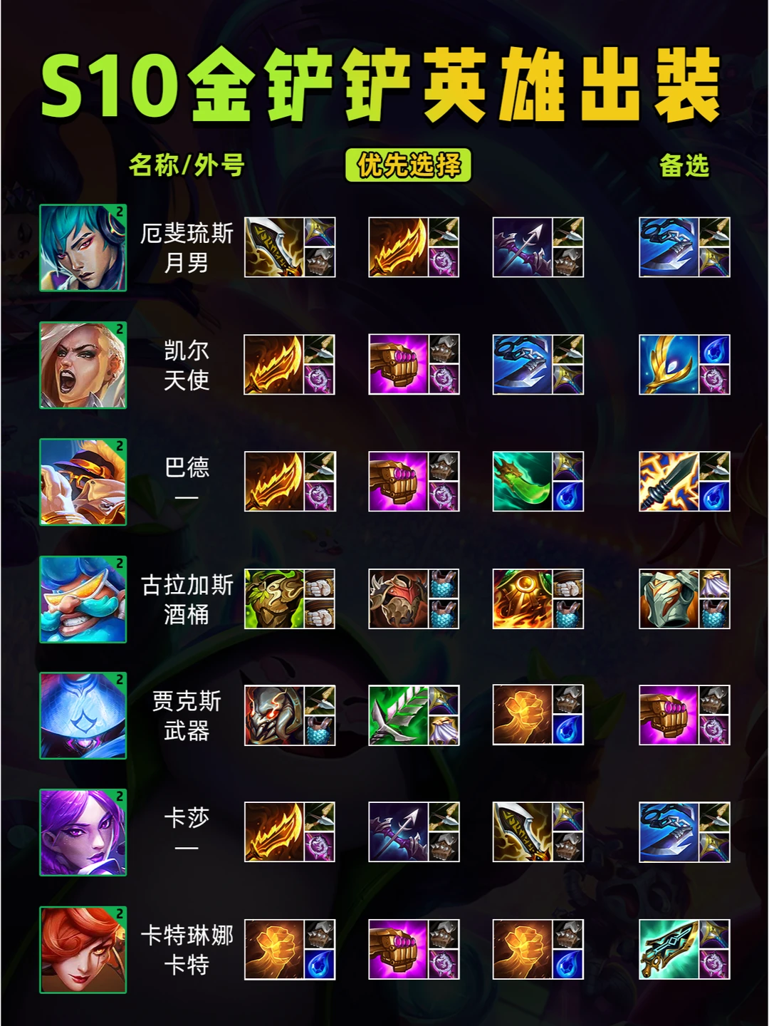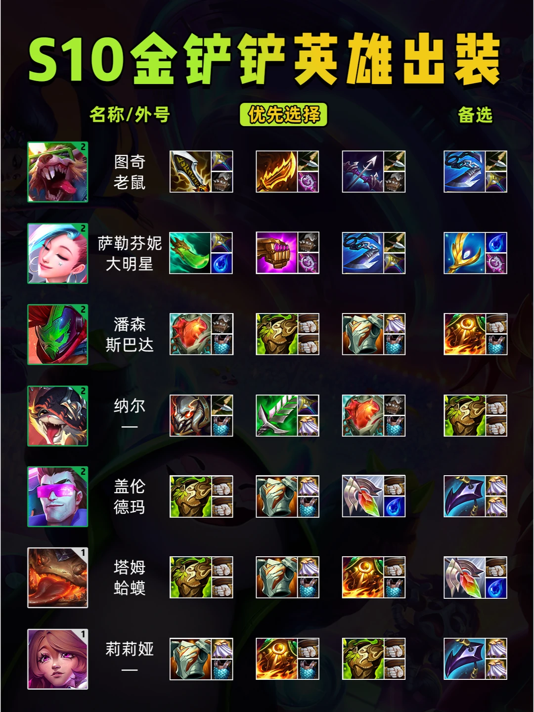 S10金铲铲新赛季英雄外号和装备推荐来啦!