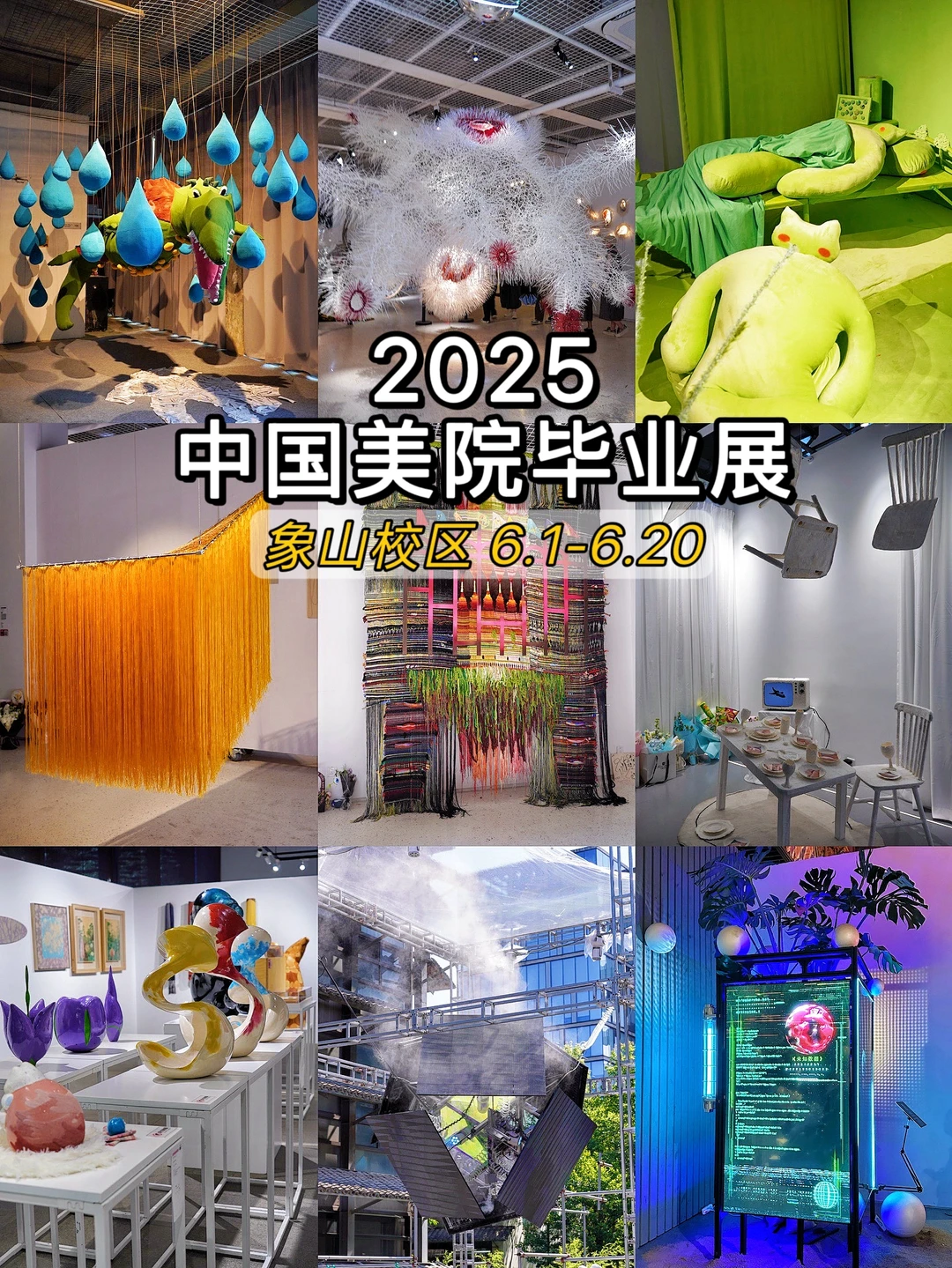 杭州6月新展,必看的就是国美毕业展!象山校区我觉得是zui值得一去的,有好多震撼的作品,脑洞炸裂💥,展品非常丰富,可以称得上是今年的🔝展览!