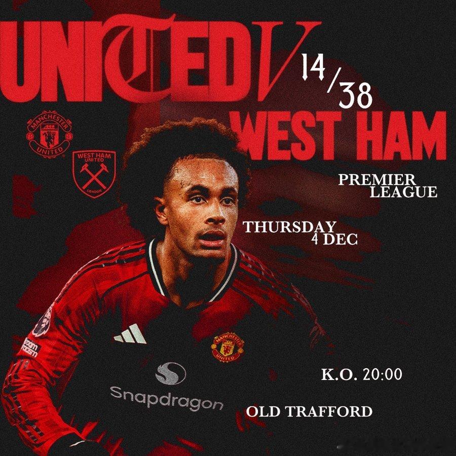 【比赛预告】英超第14轮还剩最后一场比赛,曼联争取两连胜!04:00 曼联vs西汉姆联
